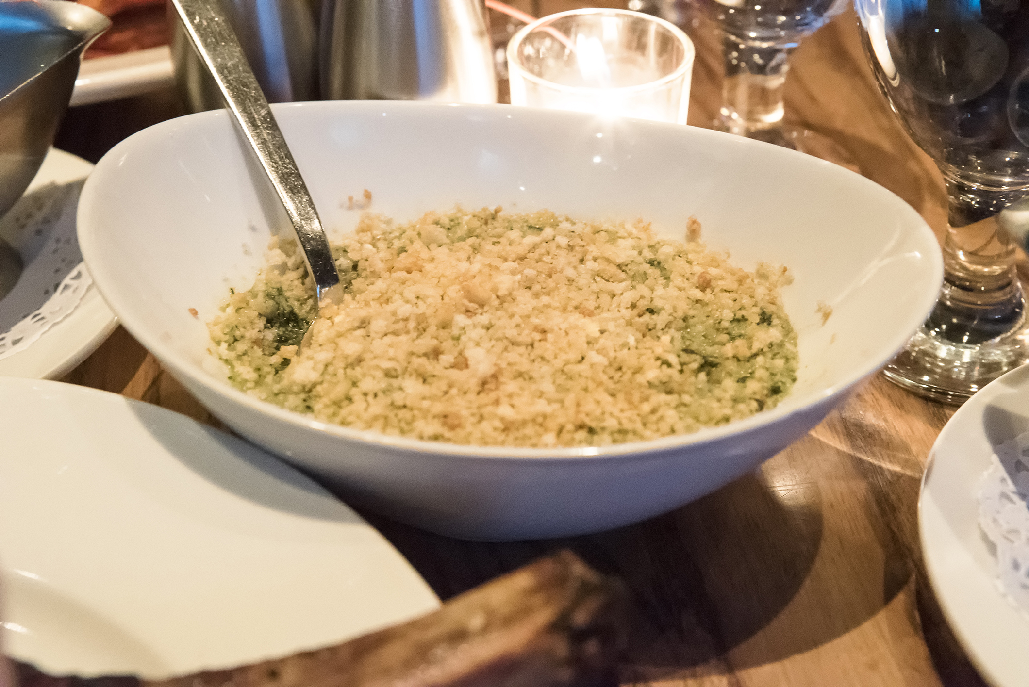 When we sat down, the restaurant was largely empty, but we were put at a small table right next to another couple. That kinda stinks. I guess we could have asked for a different spot, but I don’t like being an annoying customer. Other than that, service was excellent, our waiter was perfect, and the manager was really polite and even waited on us when we were sitting at the bar along the windows before dinner. Oh yeah – the bread. There was a nice selection to choose from: pumpernickel, pretzel, seven grain, and more. The only issue is they were not warm and toasty, but the soft, whipped butter was delicious.