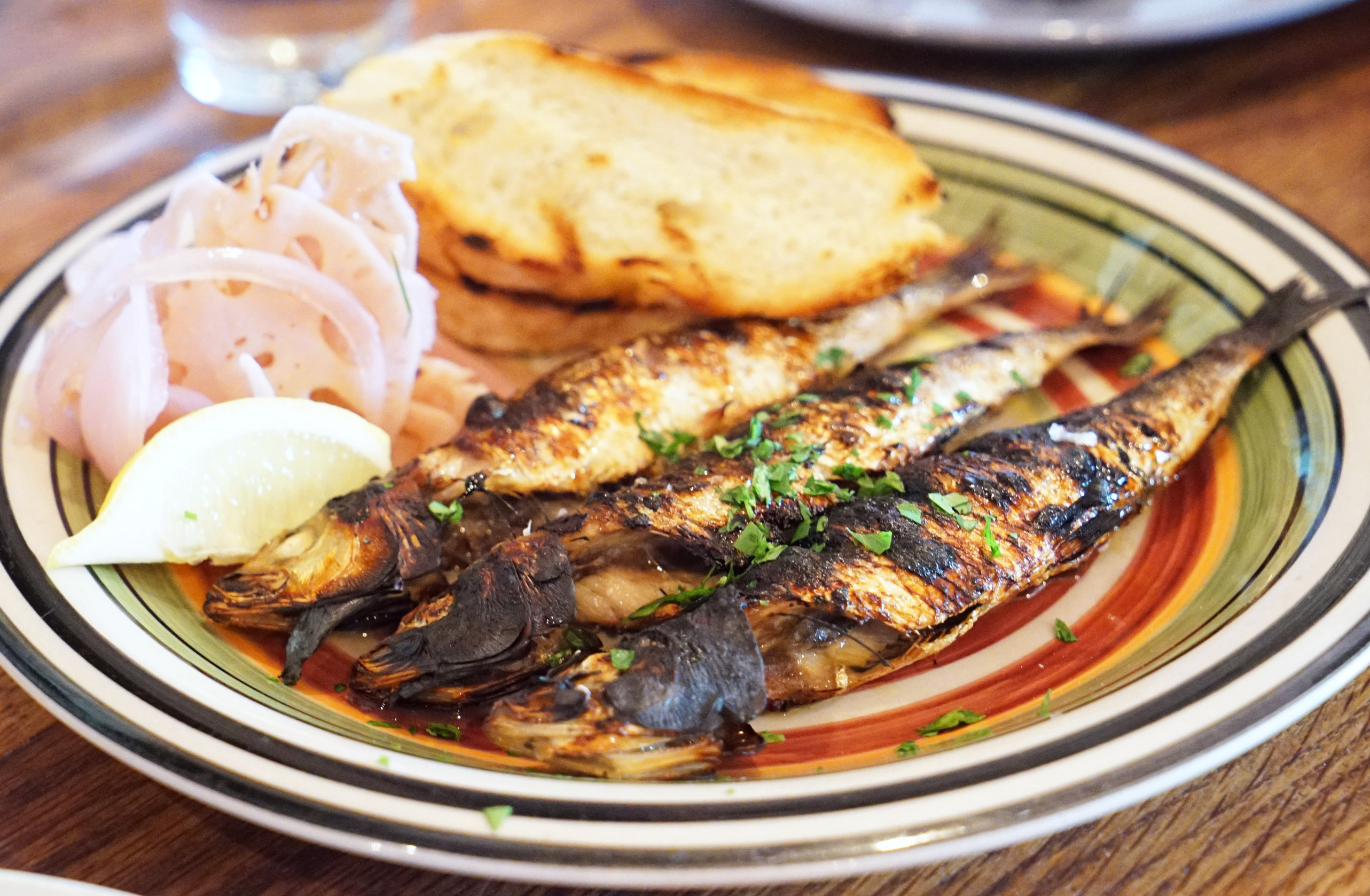 Next we had the sardines. I was glad to see that there were three in the serving, so we could each have our own. These were a little rough to navigate given the tiny bones, but the meat itself was really delicious.