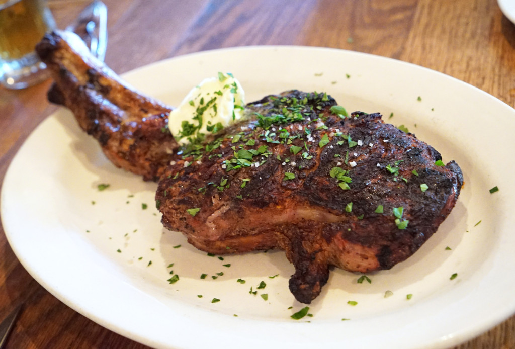 This was a tough one. My wife and I came here with a friend of ours, so we ordered an “axe handle” rib eye and the well-known hanger steak, to give it all a try. As it turns out, the axe handle was about a six or seven in flavor, but the hanger steak was a nine. So I split the baby here with an eight. The hanger was simply prepared. Salt, pepper, butter and grilled like a mo-fo. It was perfectly medium rare, super juicy and tender.