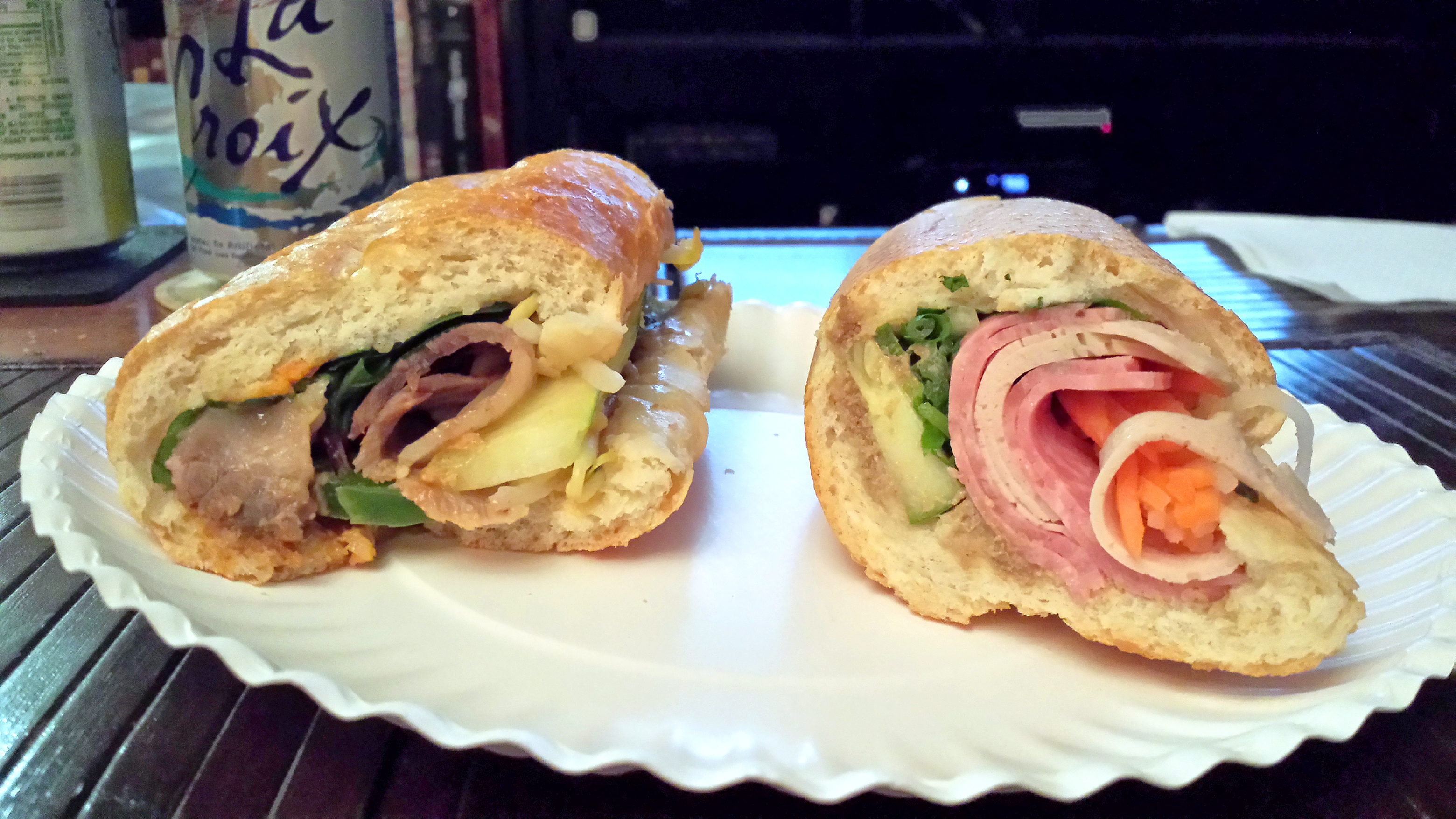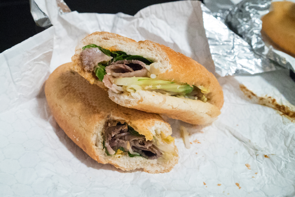 My wife and I stopped in here for some banh mi sandwiches after eating some pizza at Motorino around the corner. We tried a classic sandwich, and a pho sandwich (sliced beef and the toppings you usually get with pho, like bean sprouts, etc). Both were pretty good, but I think I liked the pho sandwich better. Both were pretty spicy without having to ask for it, which I like. Check out the pics: