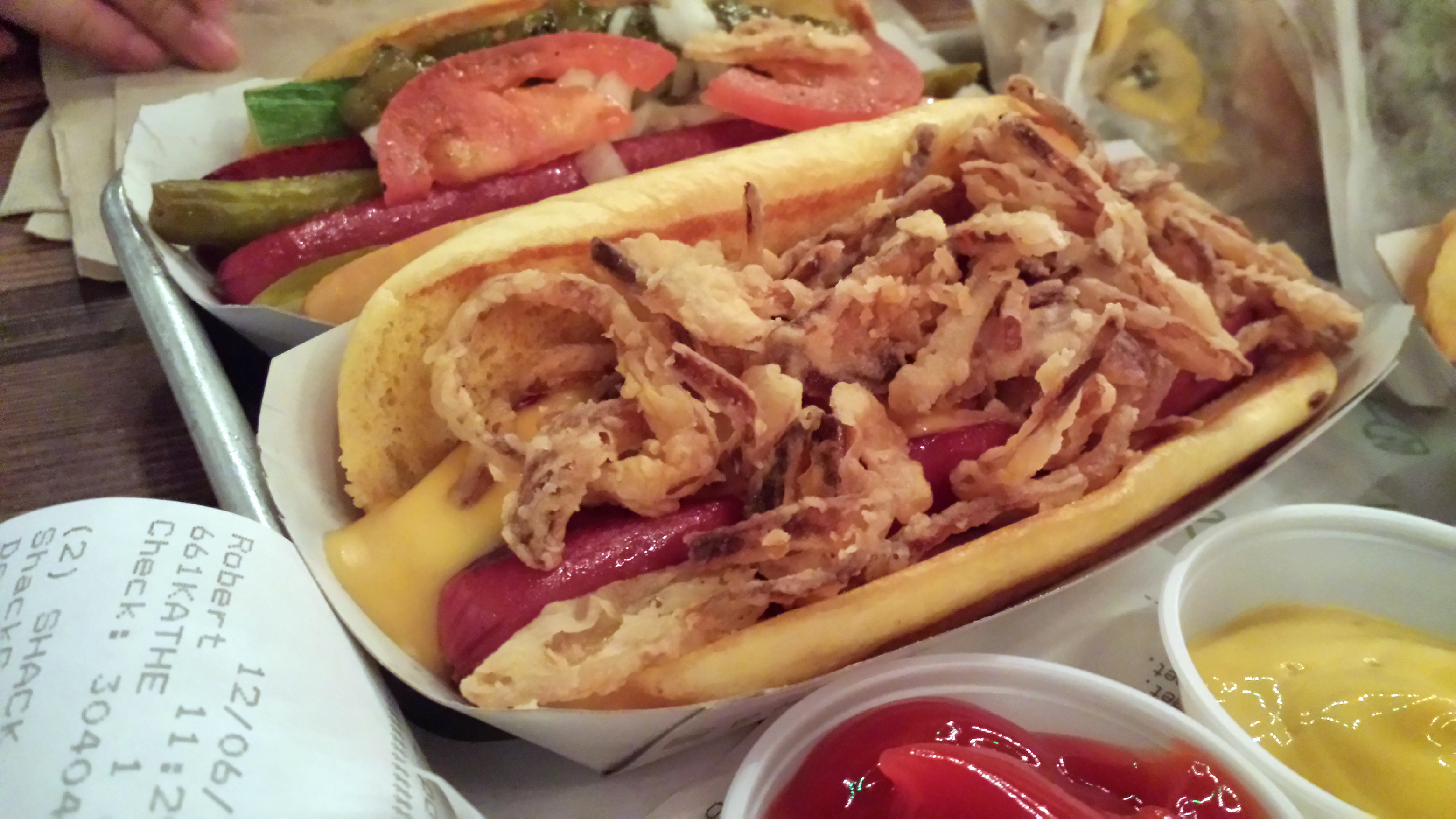 Here’s the place that has pretty much been voted the undisputed heavyweight champion of the burger shops. Lines galore, out the door, at nearly every location at any hour of any day – even the sabbath, where you will most certainly find bad, rule breaking NYC Jews cramming both meat AND cheese into their non-Kosher bellies. Throw some bacon on that motherfucker and it’s a one way express ticket to hell, my friends. This burger is amazing. What’d I have? The smoke shack burger, along with some fries, a vanilla shake and a Chicago dog for good measure. Because why the fuck not?