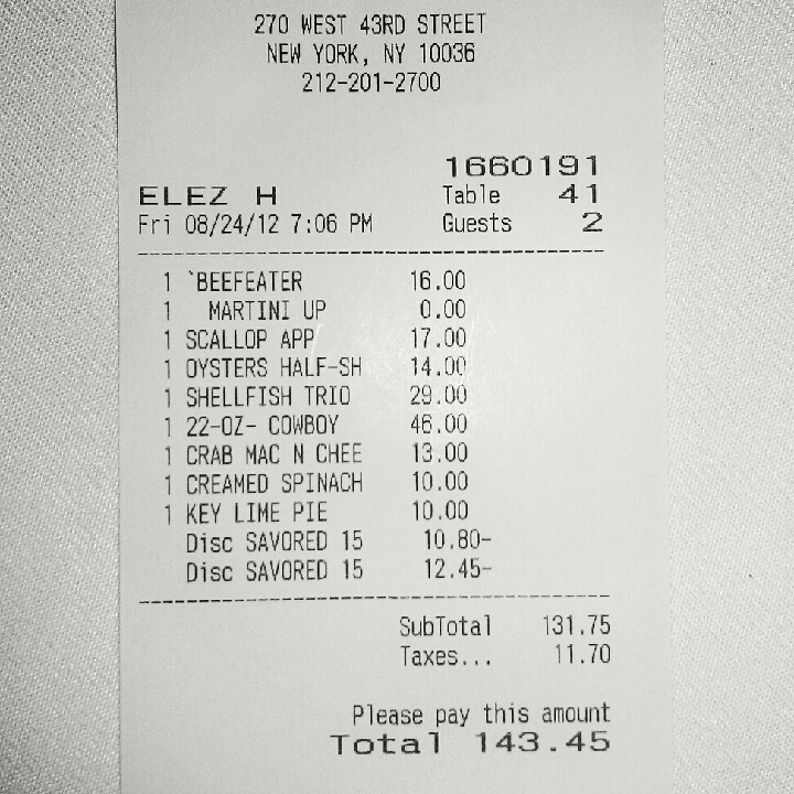 My wife and I decided to give Shula’s a try for their restaurant week menu, and to also take advantage of the 15% off discount for reserving via Savored. As it turned out they wouldn’t let us do both, so we had to ditch the restaurant week option (which seemed lame to me anyway), and my wife had to change her order completely (I was ordering from the regular menu). Check out the review, d-bags.