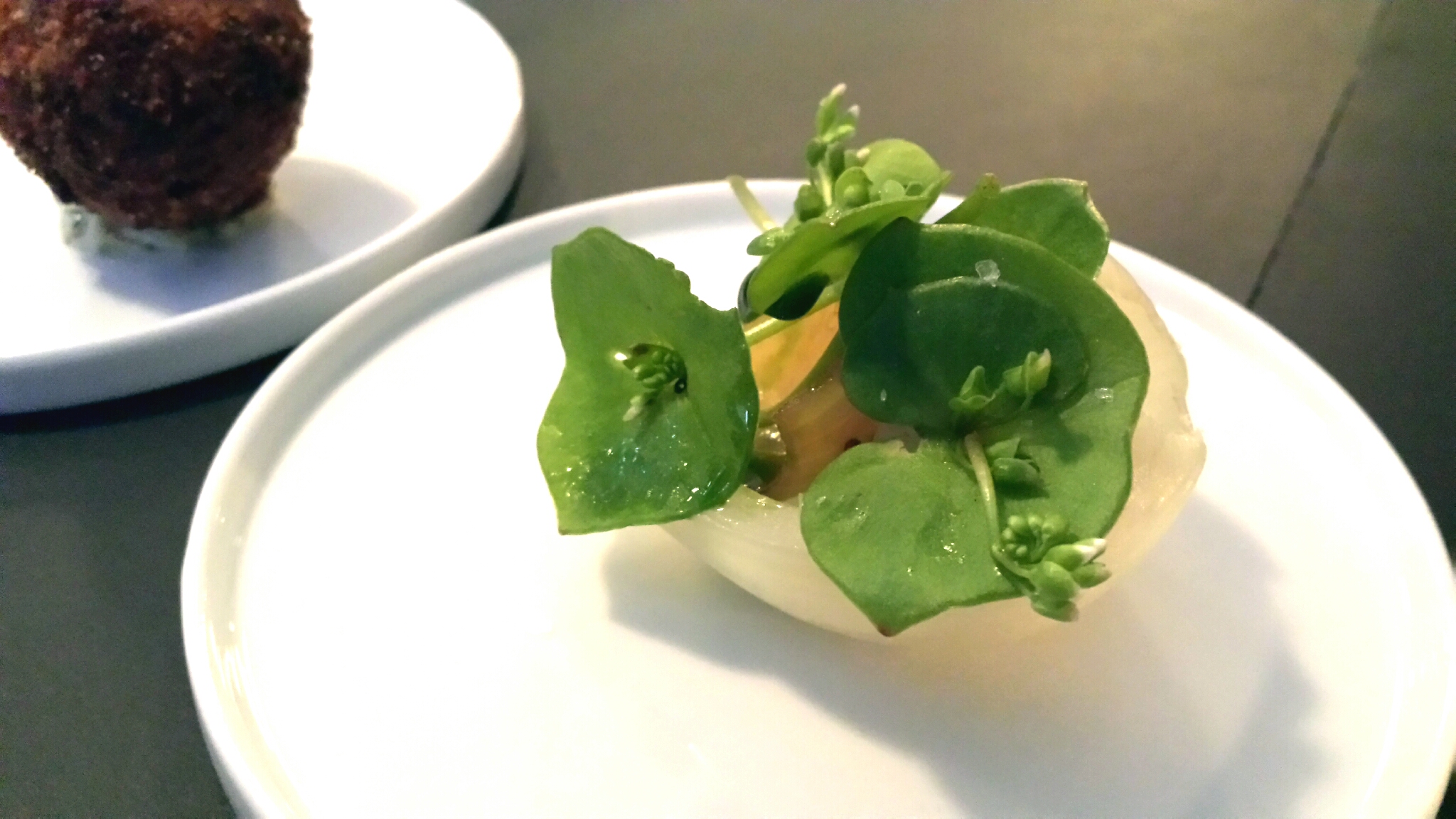These little beauties were smoked mackerel and foie gras served in an onion cup that had been steamed in whey. It was smooth and creamy, almost mousse-like. This might have taken best of the night, though it was neck-and-neck with the next dish.