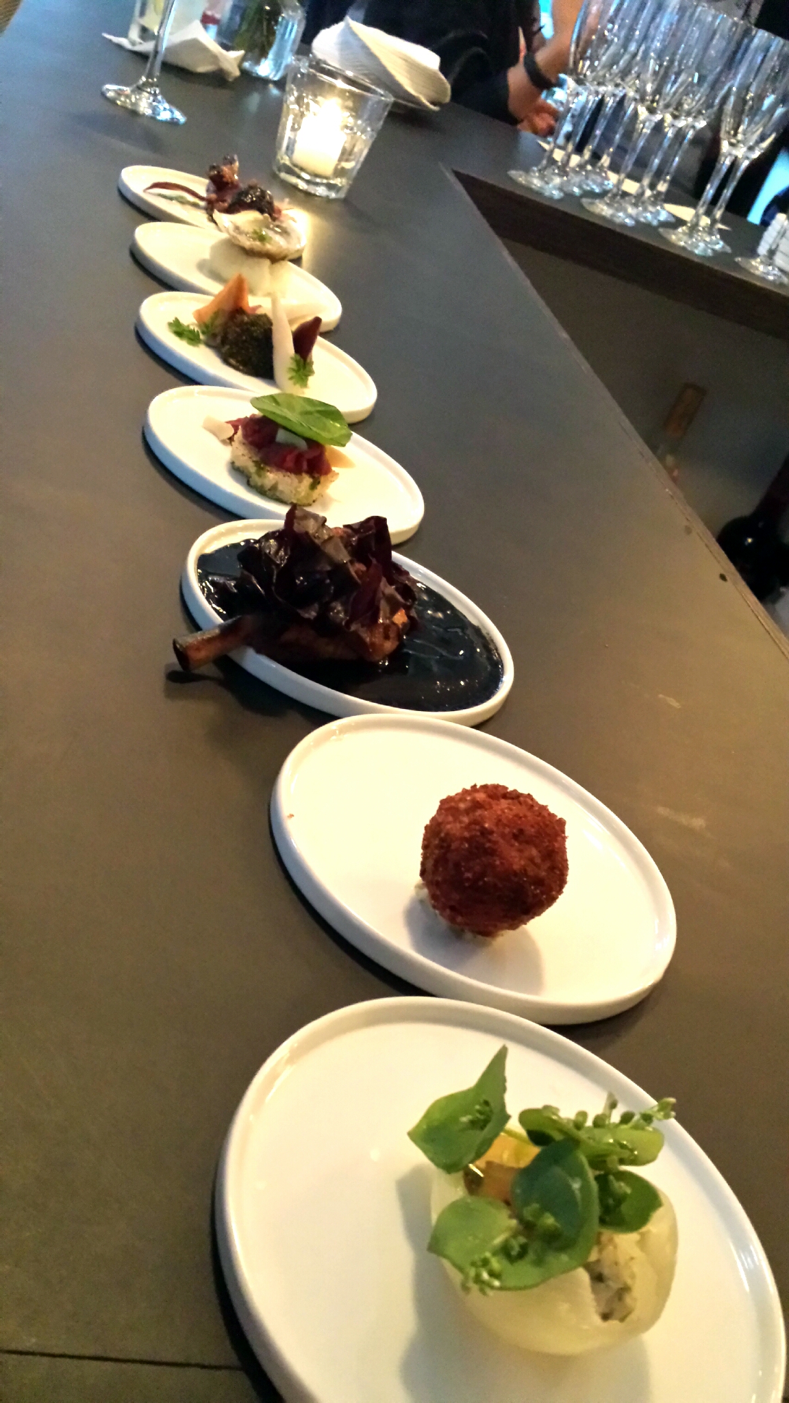 After, there were some passed salt cod croquettes with a horseradish sauce. These were really nicely fried, and the salt cod was tame and gentle. Really nice.