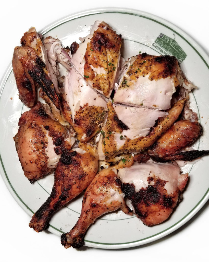 The lemon-pepper roasted chicken is absolutely fucking amazing: