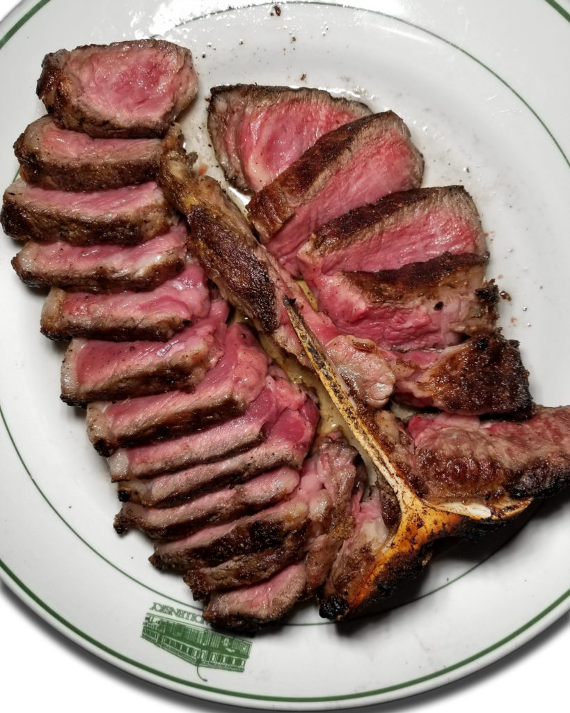 My steak was 28oz, bone-in. That’s a good-sized slab of meat on the bone – like Lexington Steele. I didn’t ask about the sizes of the other cuts. I’m sorry about that, assholes. Plating was basic steakhouse styling.
