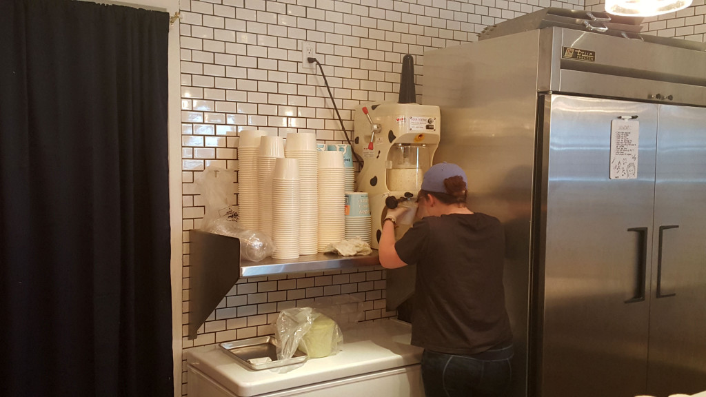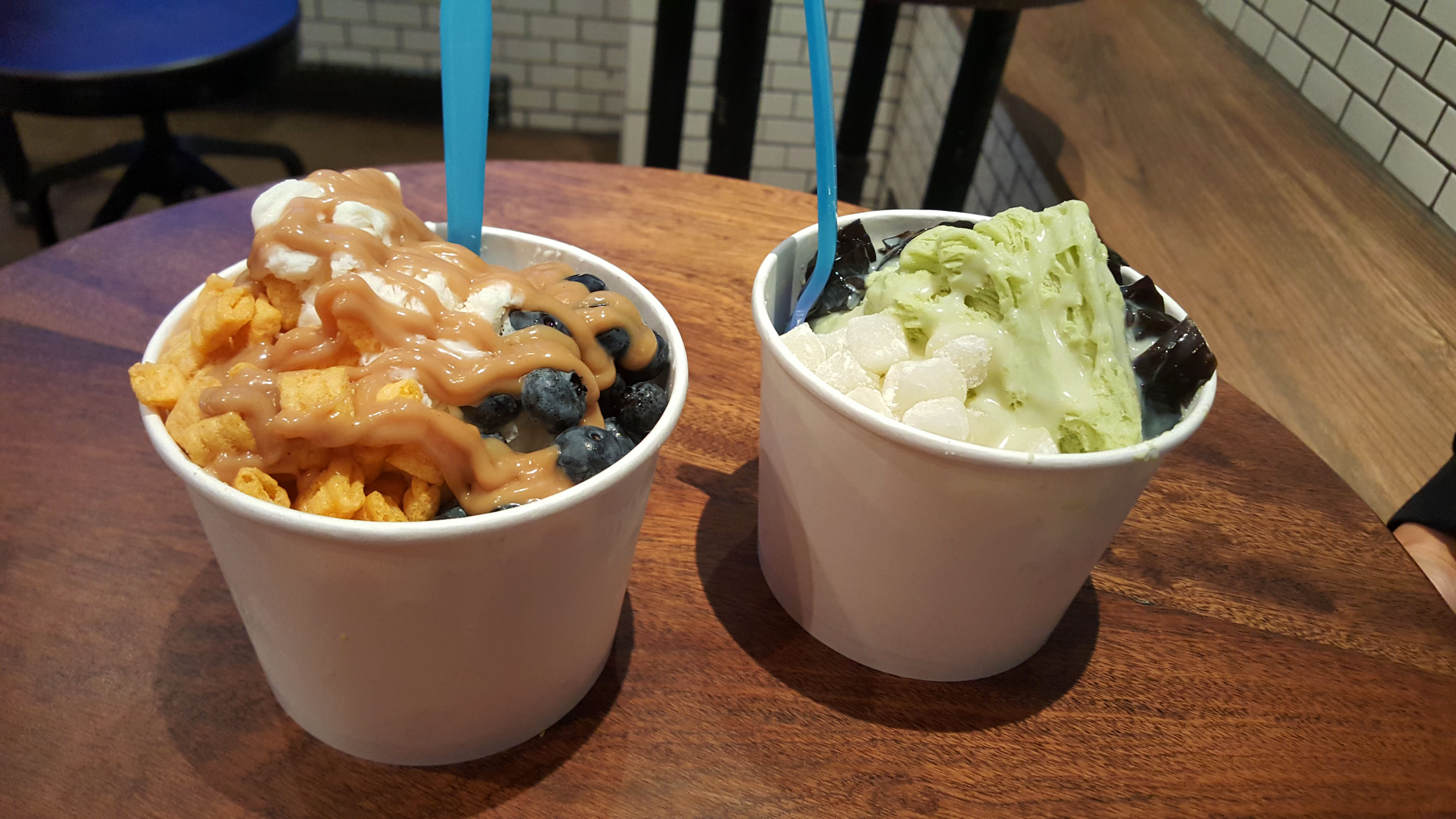 The flavors were awesome together. It tasted like someone froze my cereal and then put the ice into a high powered blending machine. One critique: I think they need to layer the sauce a bit. Toward the bottom, my “sweet milk ice” was a bit bland – similar to when the syrup doesn’t get down to the bottom of the shave ice cup to penetrate all the ice. Unlike shave ice, however, there aren’t bottles of syrup that get poured on top. The flavor is in the ice itself already, I suppose. But a string or two of that peanut butter sauce down in the middle or at the bottom would have helped tremendously.
