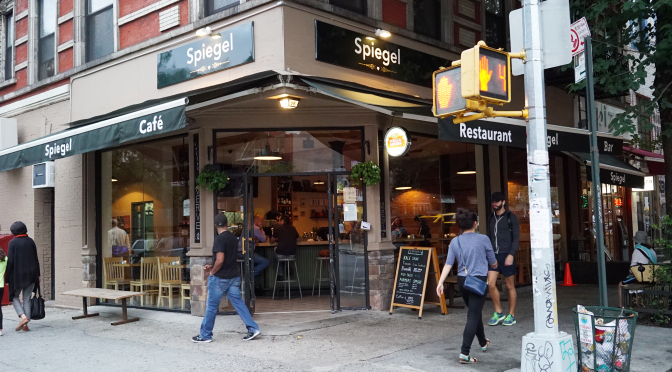 My wife and I were invited to a press dinner for Spiegel, a downtown spot that opened in May of this year on 1st Avenue at 2nd Street (very close to the famed Nexus of the Universe, ala Seinfeld).