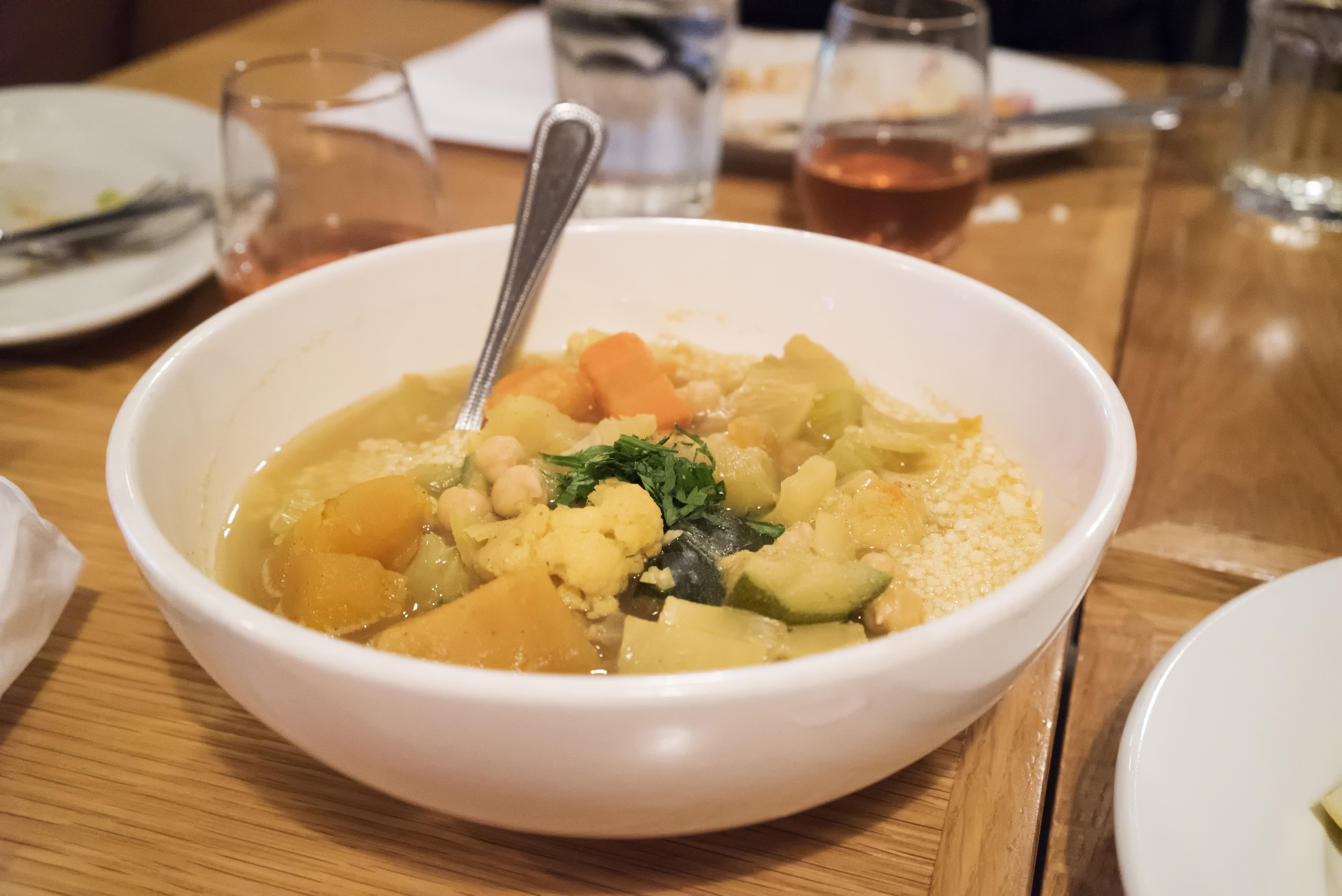 Then some entrees. First was the veggie couscous. It packed enough flavor to stand on its own without the addition of any meats. It reminded me of pastina that my mother used to make, only more soupy and less creamy. This was an okay dish, but I’d probably go for something with a bit more substance on a subsequent visit.