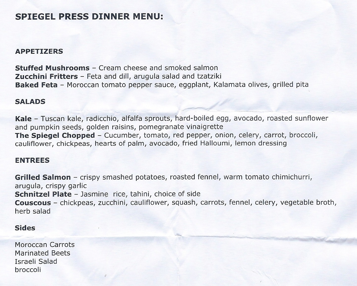 First, some starters and salads: