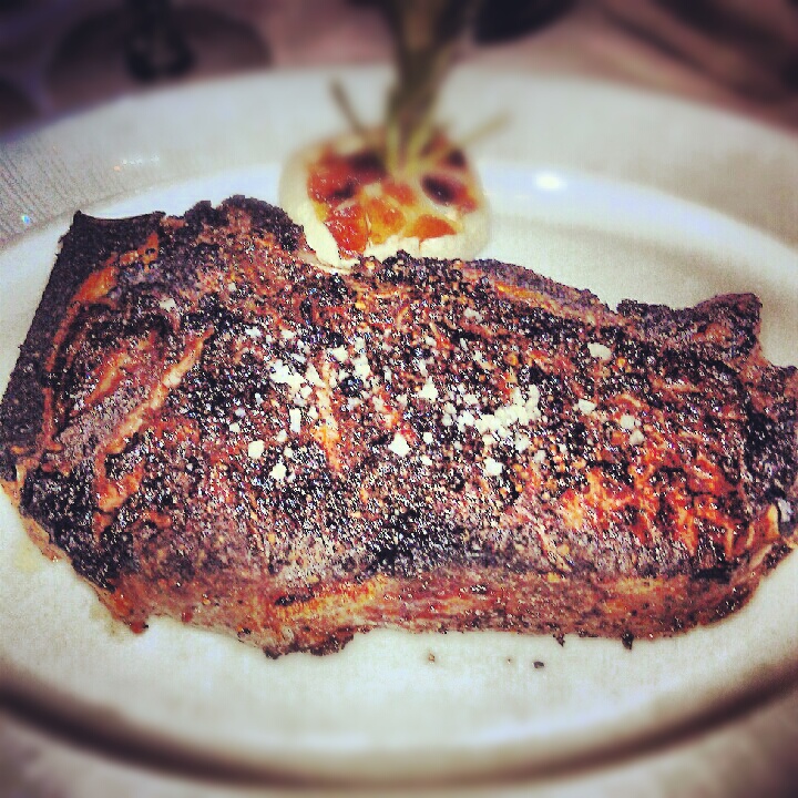 This place lived up to its expectations, and then some. The ribeye was perfectly cooked. It had a great crispy sear on the outside, and it was the perfect pink color and temperature from edge to bone, no uneven cooking, no change in texture, nothing. It had a great fat cap, and all the fat was soft and edible. There was nothing left on the bone at the end of the meal. Aside from the meat, everything else was perfect as well. This place is fucking legit. On the second visit I had the bone-in strip, and it was on par with the ribeye: amazing. Perfectly cooked, very flavorful and juicy. I tried smearing some of the mushy garlic onto a few bites and it really enhhanced the taste. I suggest trying it a little bit here and there. I had a taste of the special bone-in filet as well, and it is top notch.
