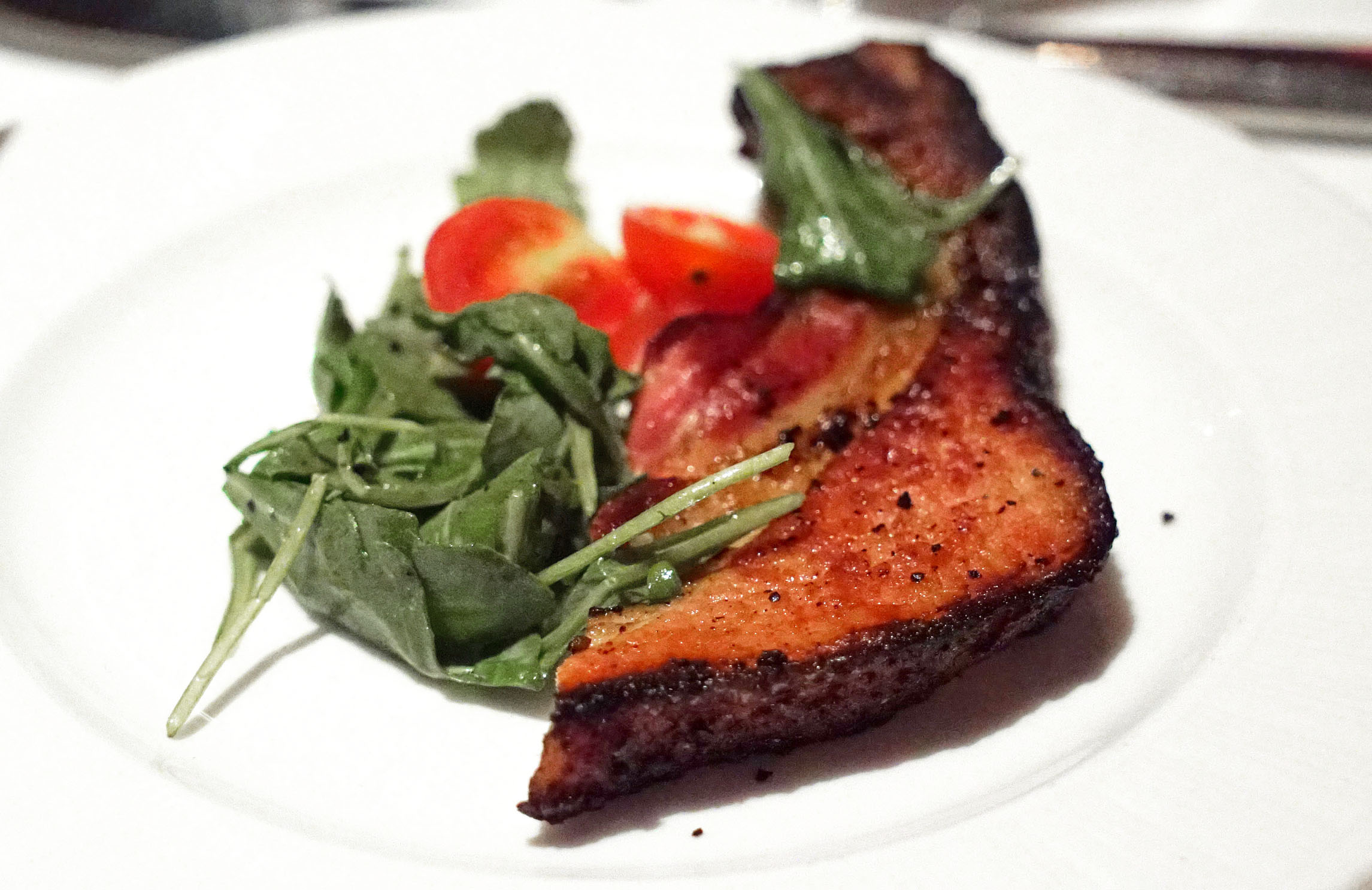 There was a ton of flavor on the outside crust, but that meant I had to cut and portion carefully so as not to have a bite of all center with little seasoning. The meat was super tender and absolutely fatless. It was aged, so any fat that may have been in there melted away, leaving behind a dense, meaty and super soft hunk of beef.