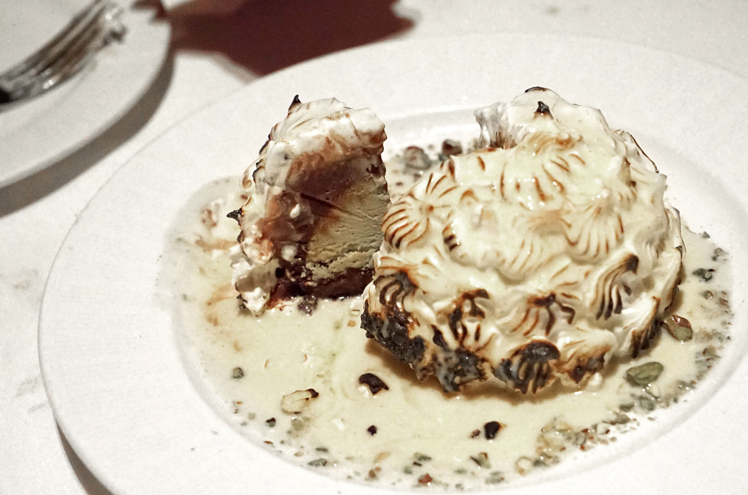 The chef also sent out two desserts for us. First was this beautiful Baked Alaska. Watch the service here: