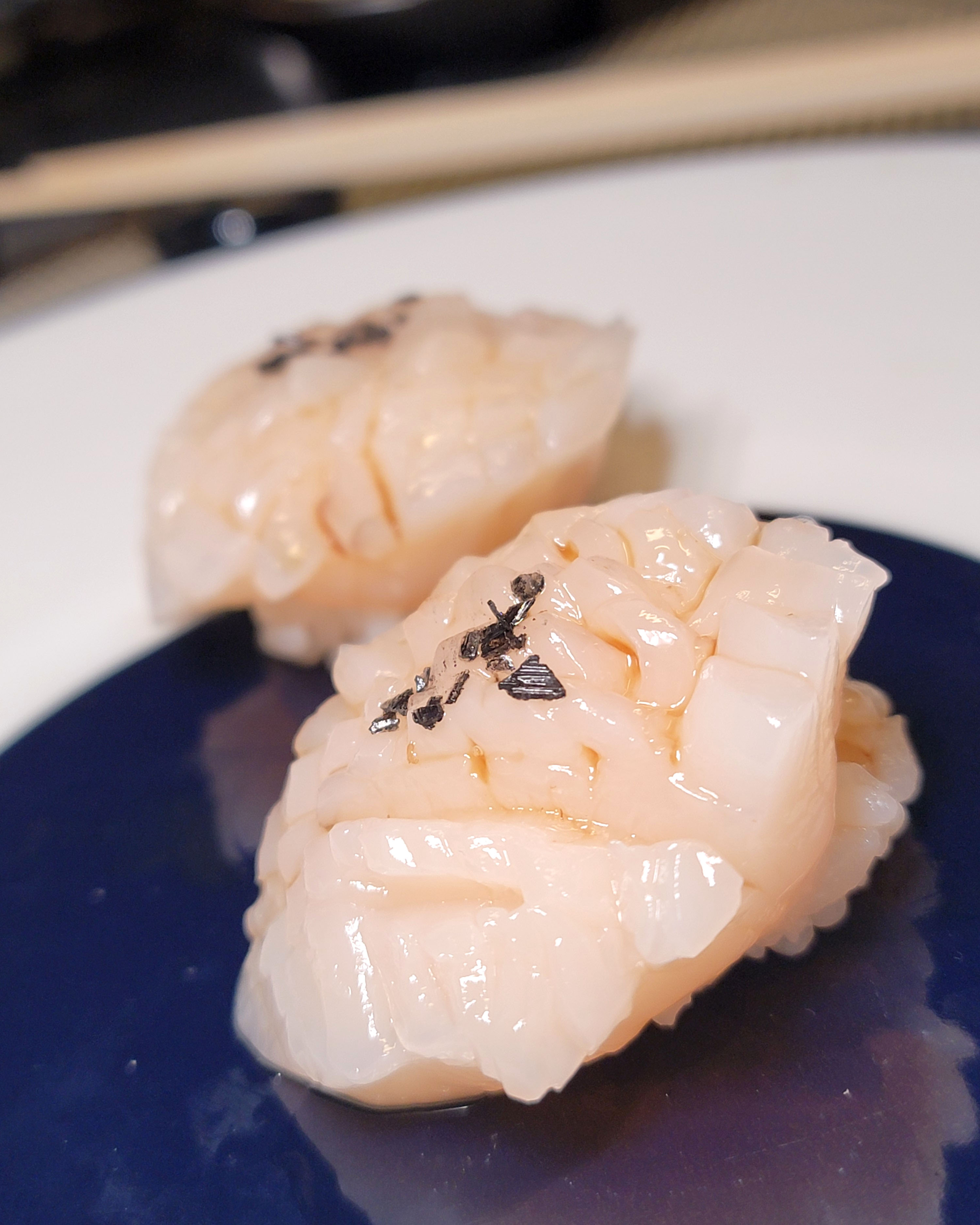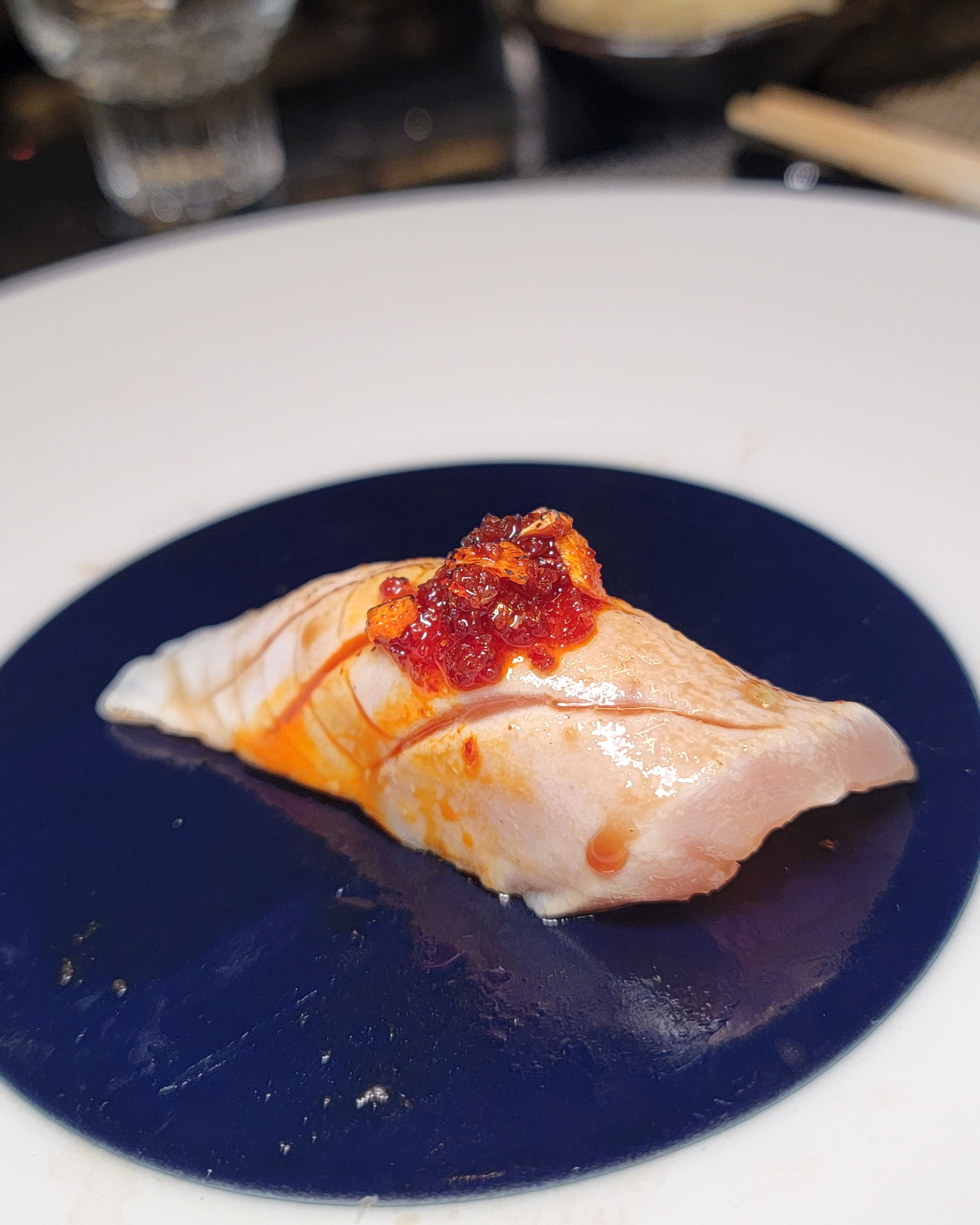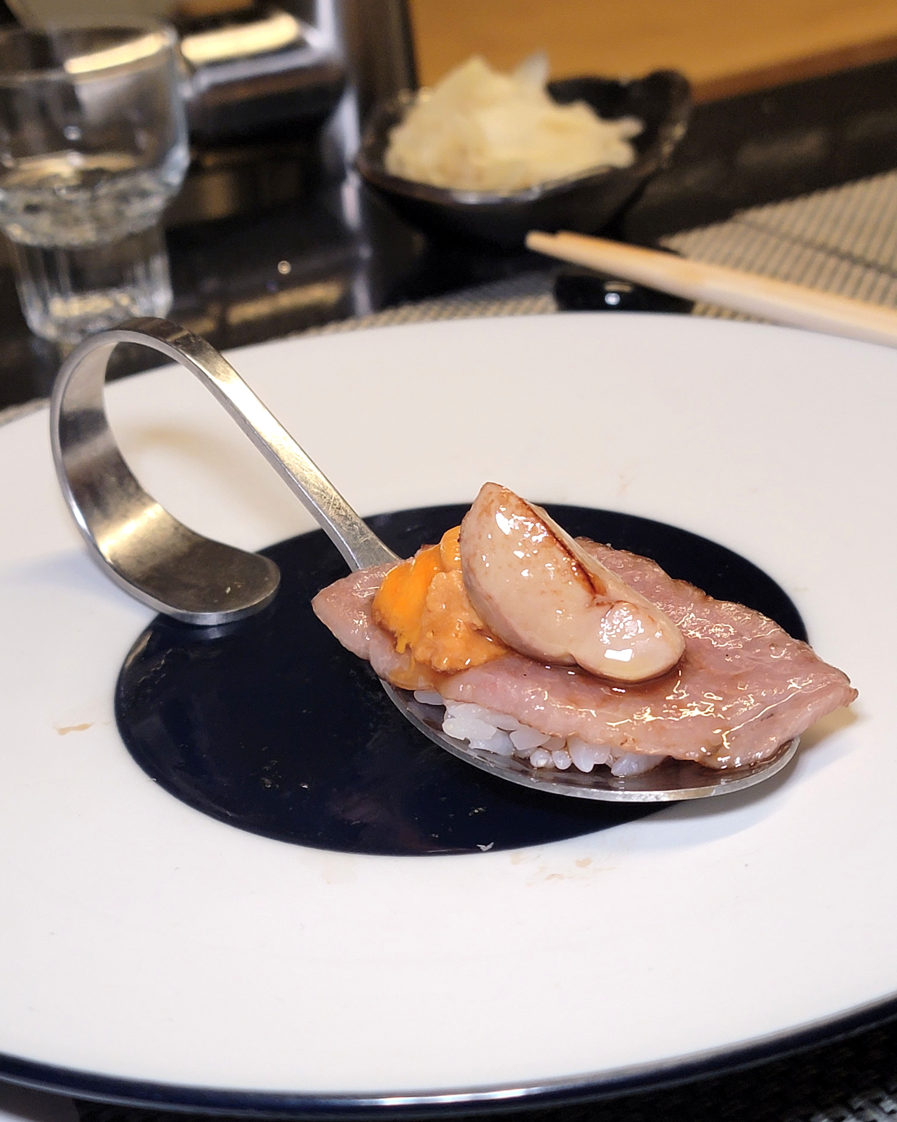 This spot offers a great 18-course omakase for just $100. I’m just going to dump the photos I snapped for each piece, but our favorites were the following: oyster appetizer, shrimp, red snapper, shima aji, both medium and fatty tuna, uni, salmon, wagyu spoon, and the shrimp and uni hand roll we added at the end. We would definitely come back here again.