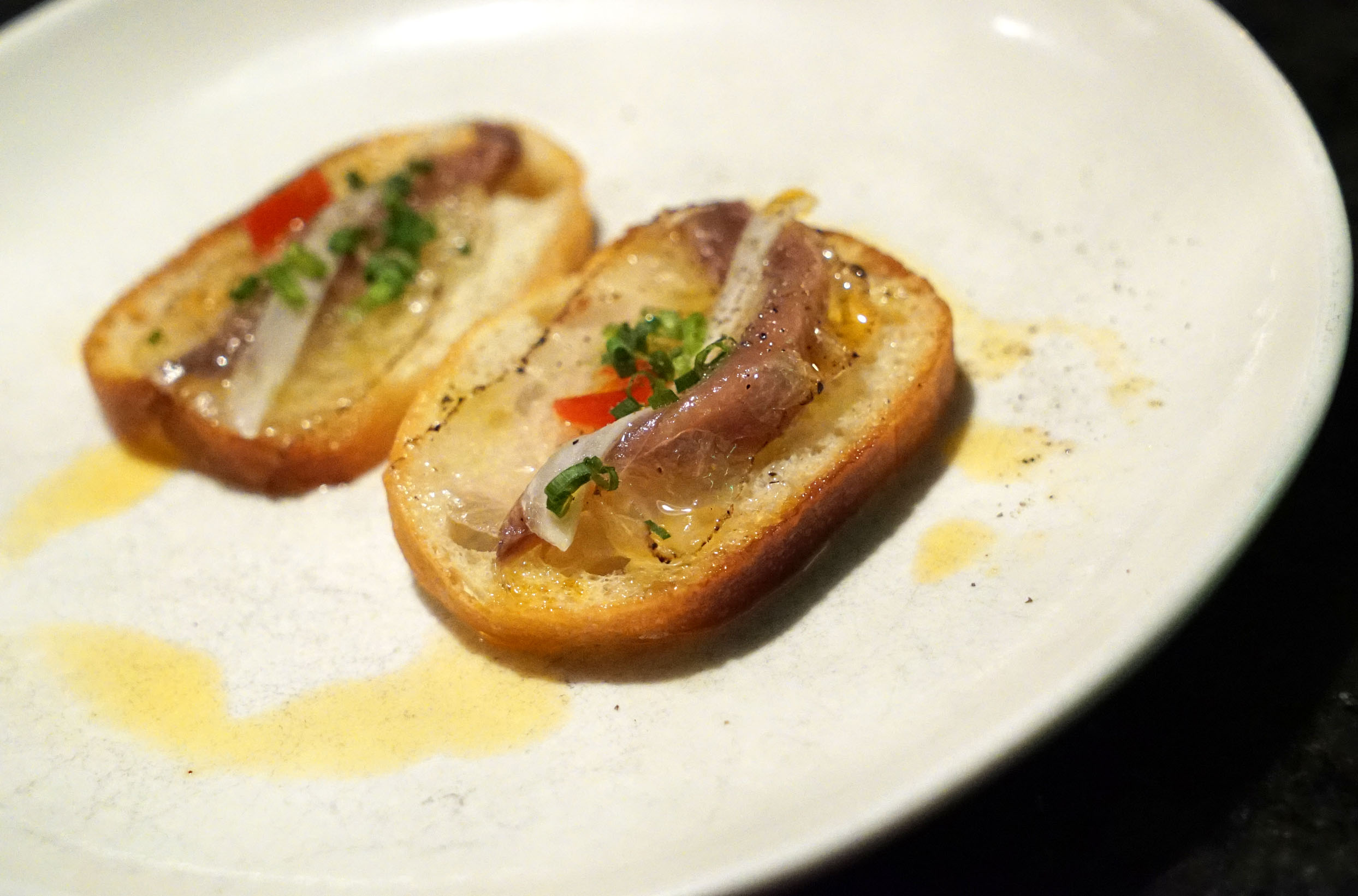 Next we tried a crostini with sardine. This was really flavorful and smoky, with a great savory punch to it.