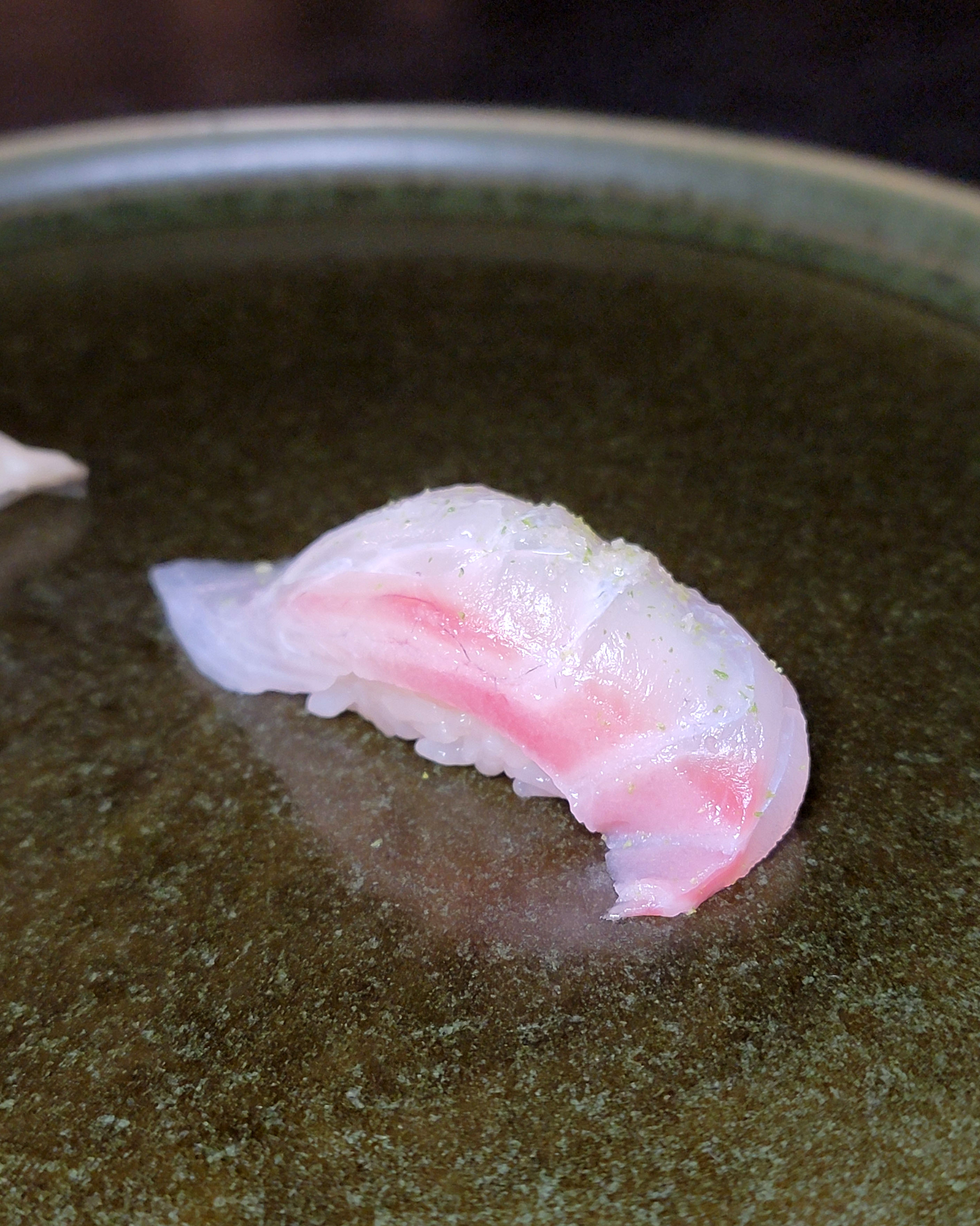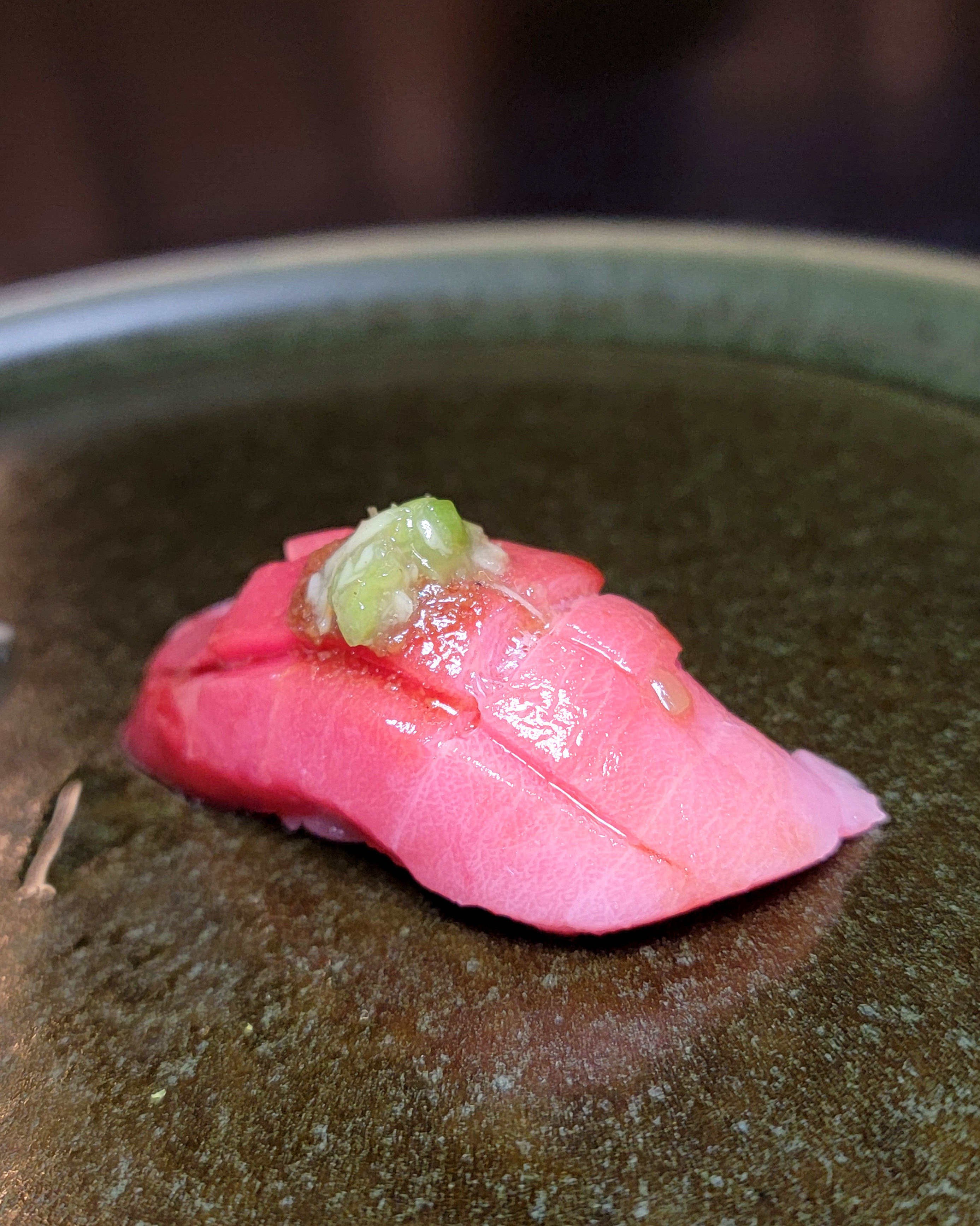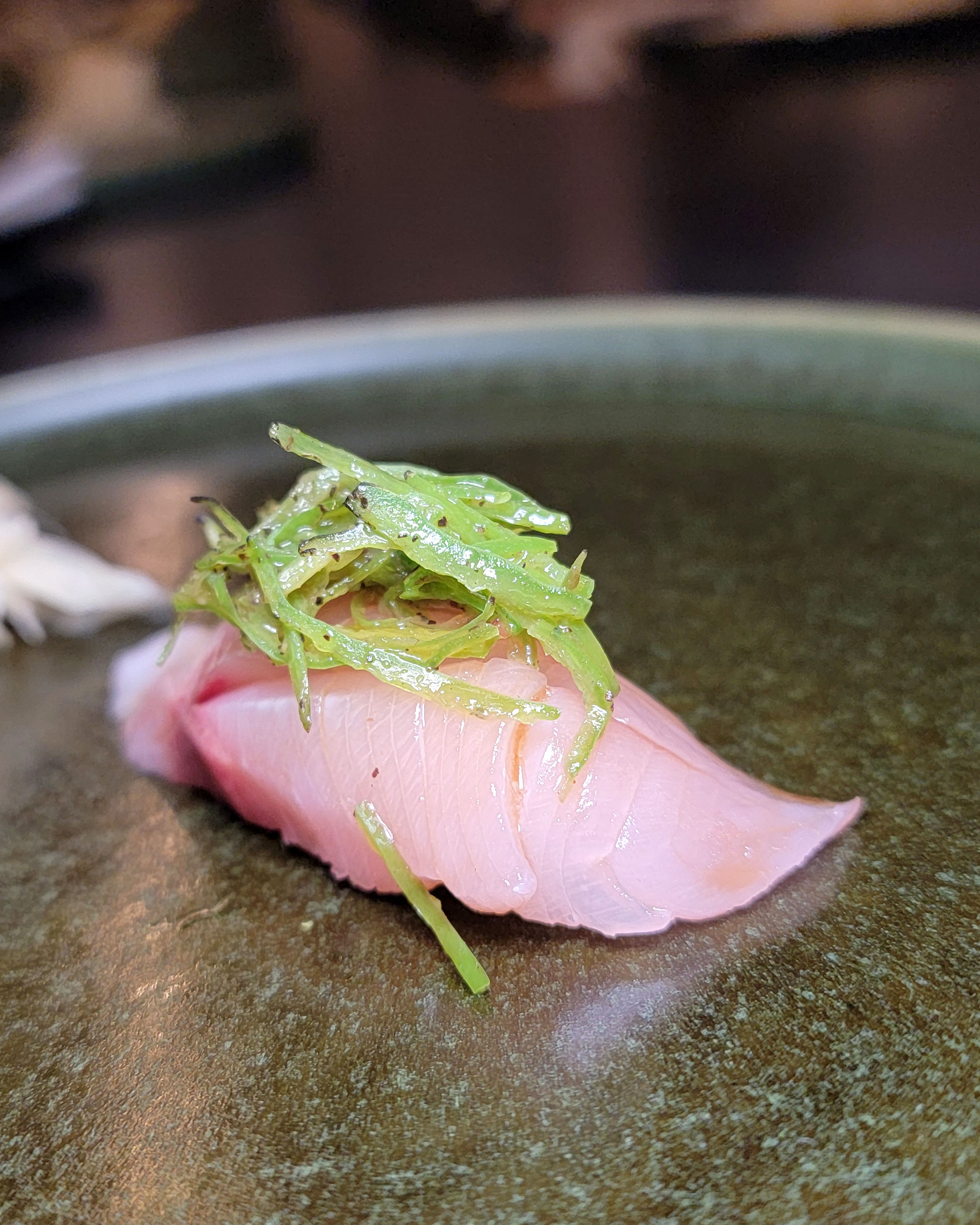 This 13-course omakase joint is a pretty great deal for just $75. It starts off with a few really awesome pieces like the medium fatty tuna, the shima aji and the tuna with truffle.