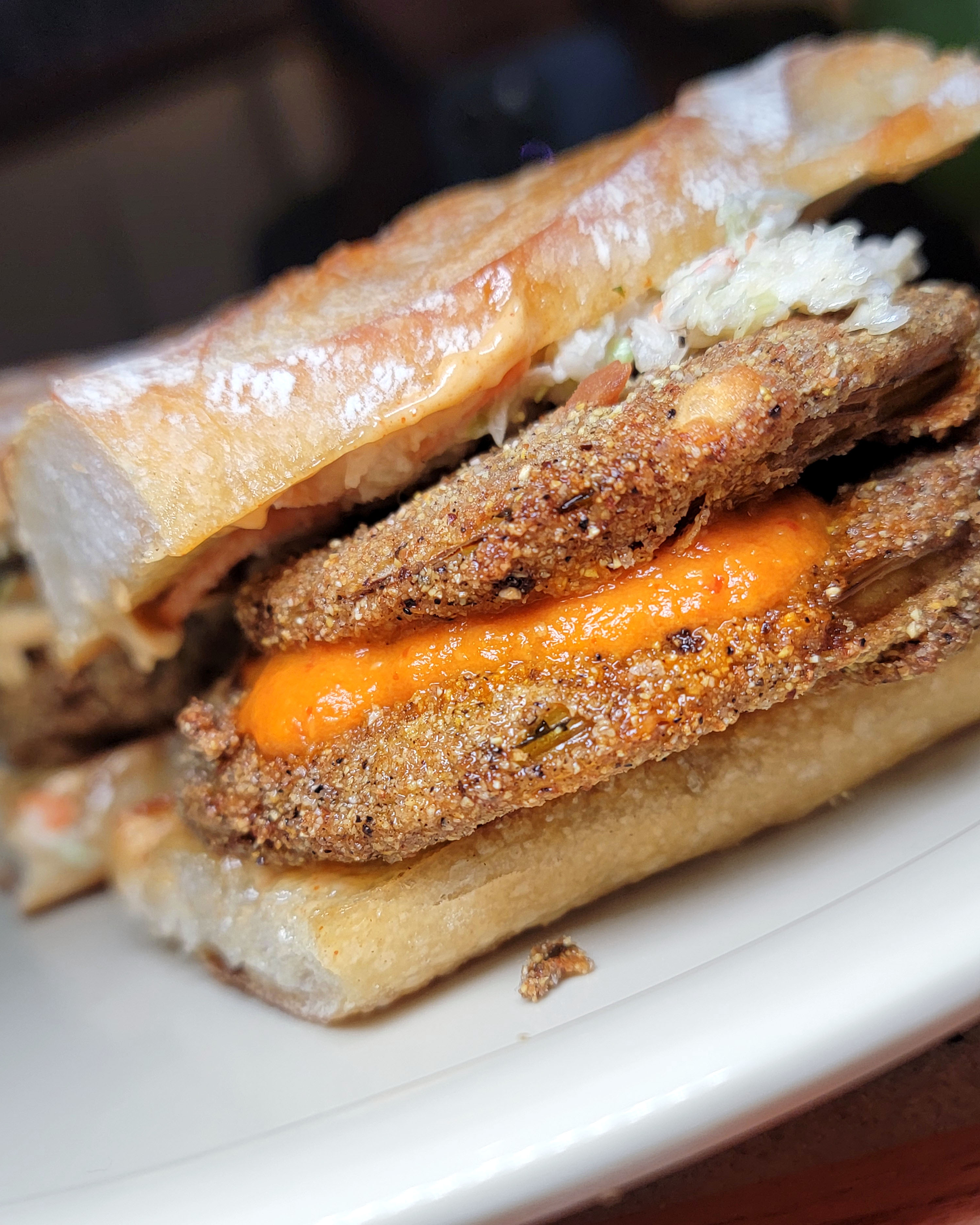 We also tried their fried green tomato sandwich with slaw. I enjoyed this, and the baguette was a really nice surprice here on this sandwich. I expected it to be too hard and rough, but it was warm, soft and really nicely butter-toasted.
