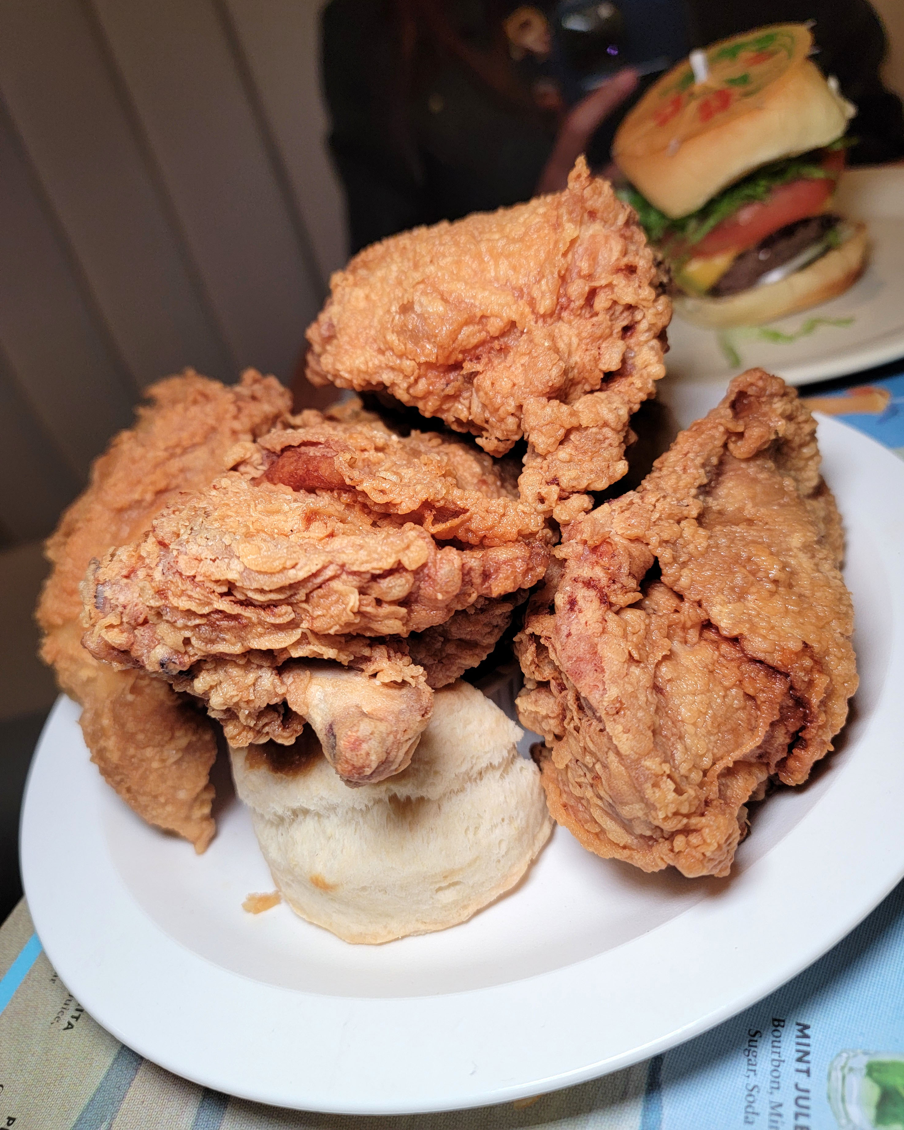 We also tried their fried chicken, which, despite saying three thighs on the menu, actually came with four. Also great biscuits, two hot sauces and a sweet honey butter. At $22 this is a great deal, especially considering how crispy outside and juicy inside the chicken was. Delicious.