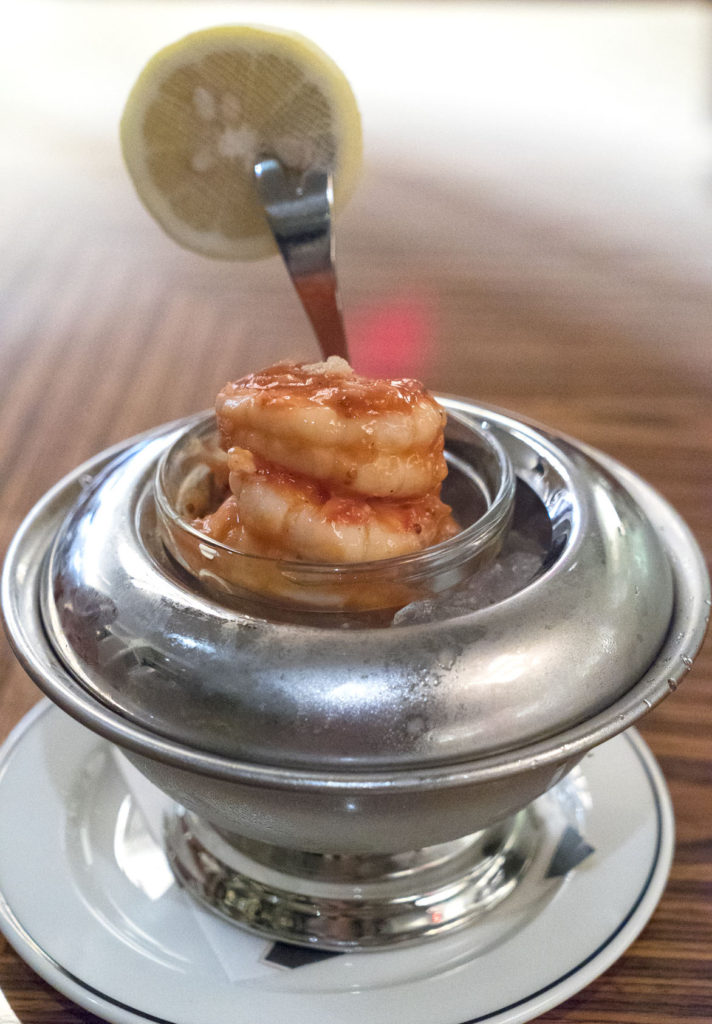 Shrimp Cocktail: This was a bit small (three medium-sized shrimp), and there was something slightly bitter about the taste of the shrimp. They were nicely cooked, however, and I liked the fact that they were pre-dressed with a horseradish-based cocktail sauce. Presentation was interesting too.
