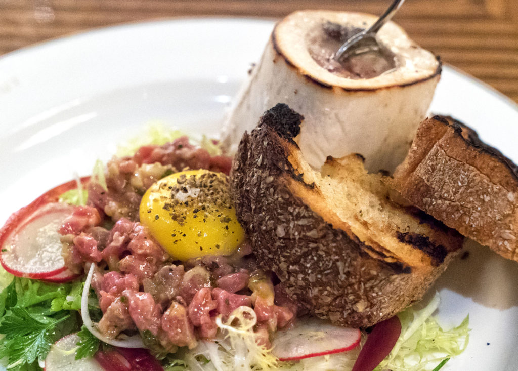 Portions vary here. For the steak, they are pretty good. All are large sized cuts for a fair price, and even though we didn’t like the skirt, there certainly was a lot of it. I thought the beef tartare was a bit small in terms of the amount of actual beef on the plate, but the salad that came with it, and the marrow as well, make up for that (see below). The tots and shrimp cocktail items we got with the restaurant week menu were a bit skimpy (three medium-sized shrimp and about 15 tots). There’s a strong possibility, however, that these items are cut back a bit in size simply because they are included with a discounted lunch promo like restaurant week. American Cut also runs a regular $28 lunch price fix menu. I’m not sure how that differs from the restaurant week menu that we tried for $29.