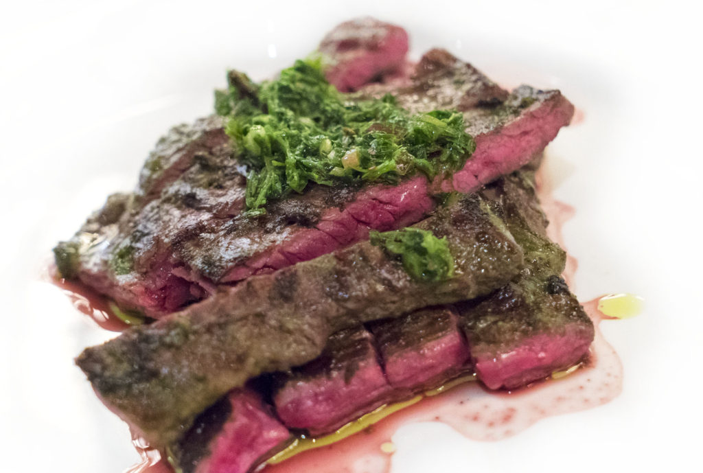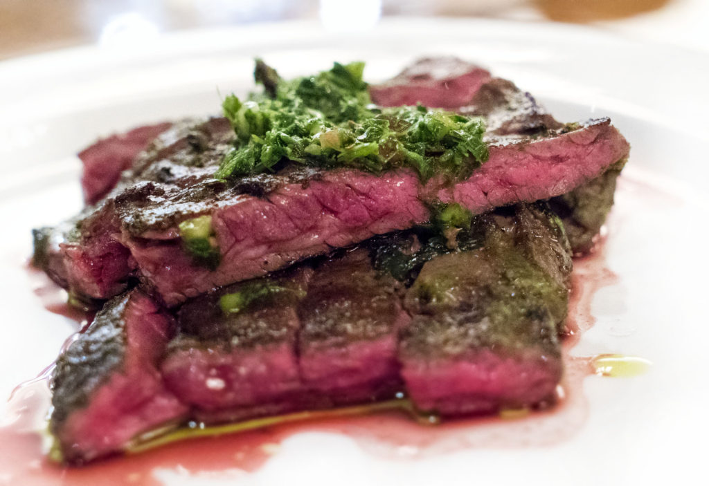 Unfortunately we were not that happy with the skirt steak on the price fix menu. While it was cooked to a perfect medium rare, it had an odd, rubbery texture and was under-seasoned (needed salt). I don’t mean rubbery like chewy. It was definitely tender, but it was an odd sort of tender that reminded me of some of the fake-tasting cuts my wife and I have had in Mexico while on vacation, which kind of grossed us out. Perhaps it was over tenderized? I’m not sure. I honestly don’t know what it is, but we know it when we taste it. On top of that, the chimichurri sauce added almost no flavor to the dish. It just tasted like “green” from the parsley. I didn’t get any salt content or even any garlic flavor from it. I was bummed. I didn’t even really want to finish it or continue eating, both because of the lack of flavor and the odd texture.