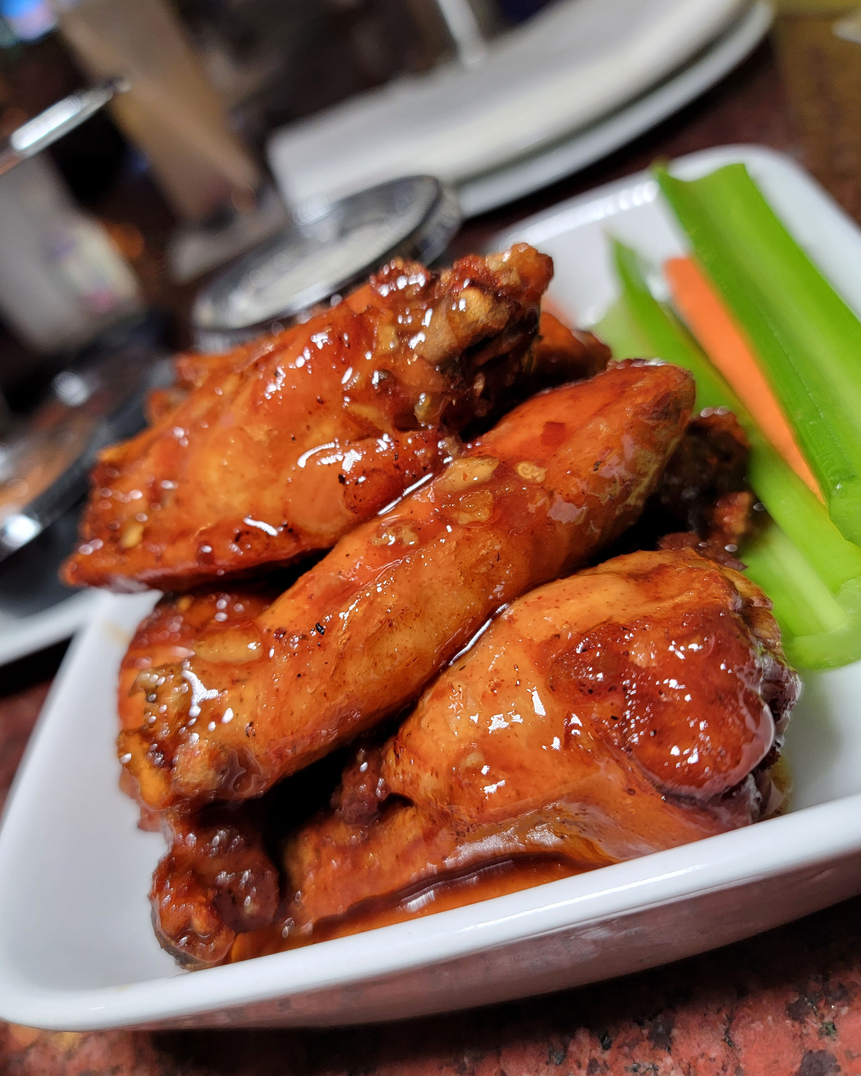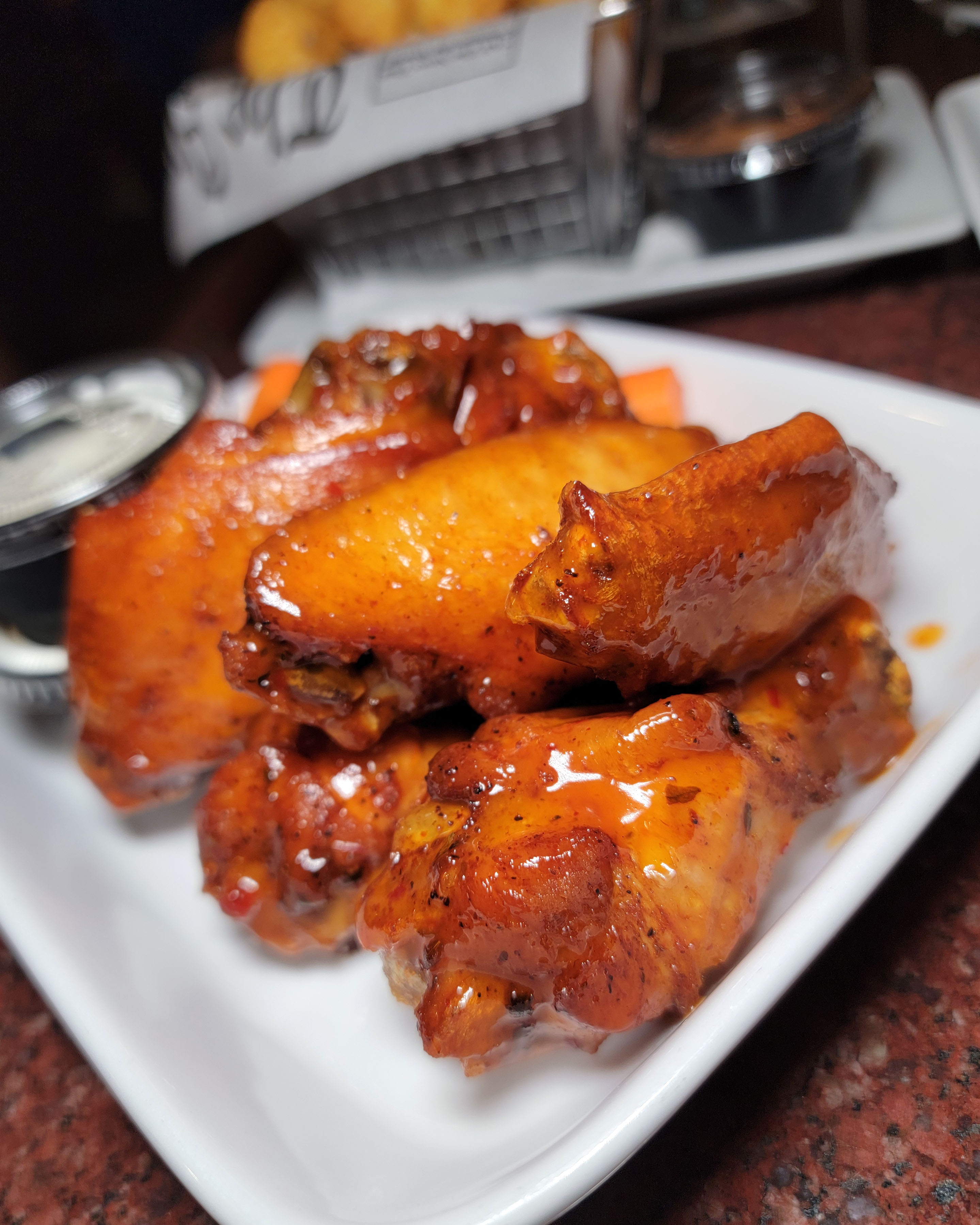 My wife and I went on a little food and bar crawl this past weekend, and The Hairy Lemon was our first stop for a bite. We tried two flavors of wings: spicy orange and ginger sauce, and mango habanero. We liked the mango habanero better, but neither were particularly as spicy as we had hoped.