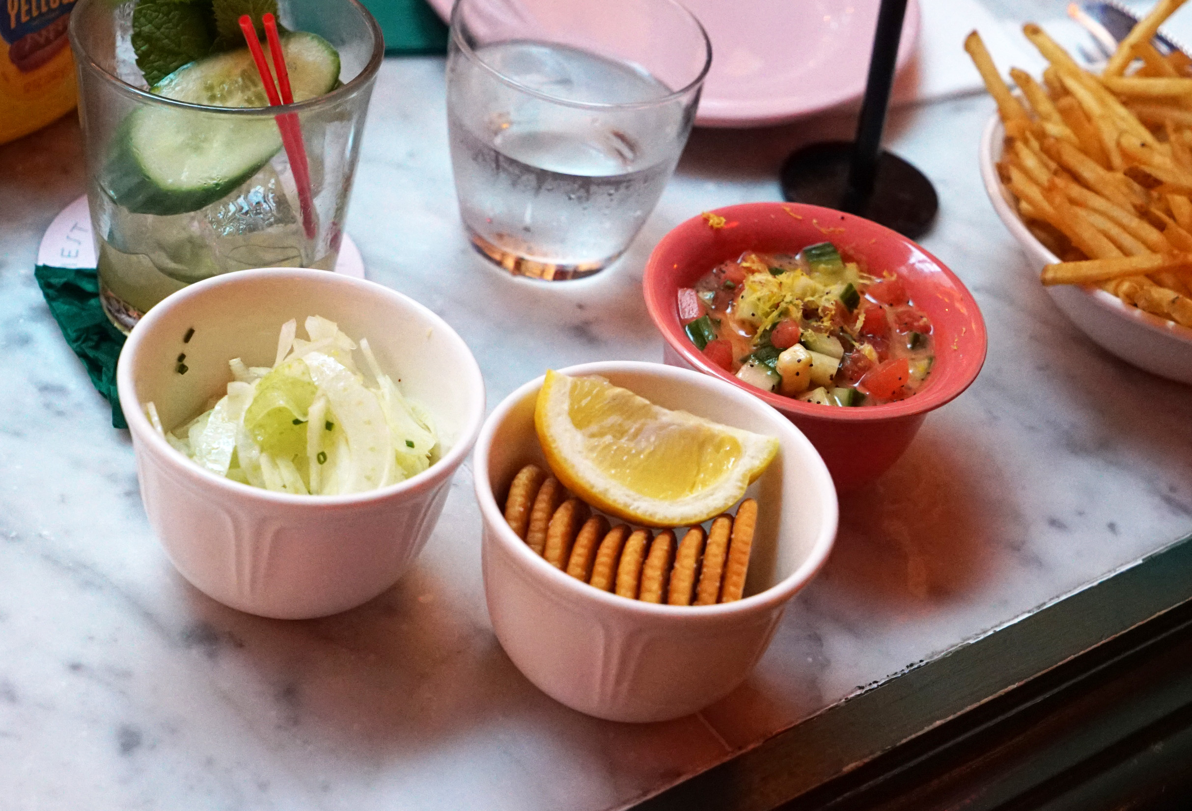 We tried the buffalo cucumbers, with watermelon, poppy seeds and mint, as well as the smoked fish dip.
