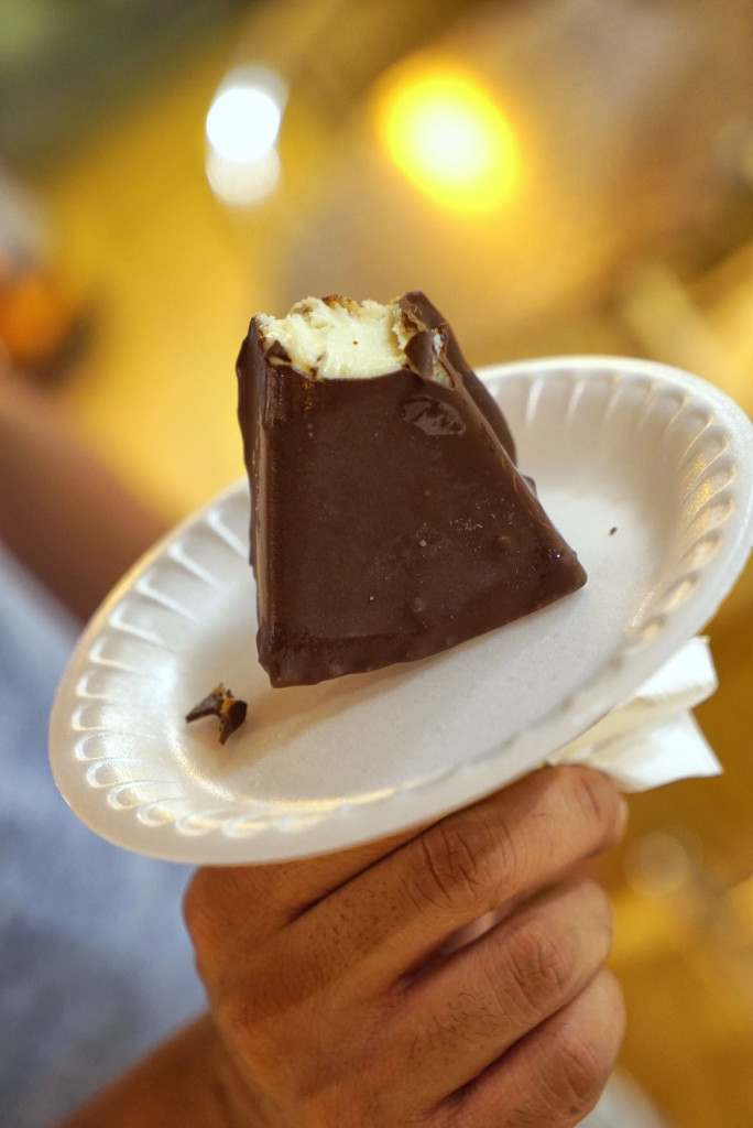 Chocolate dipped Key Lime Pie on a stick: Try one – excellent! Some are not as good as others, but this “Kermit” one is fantastic.