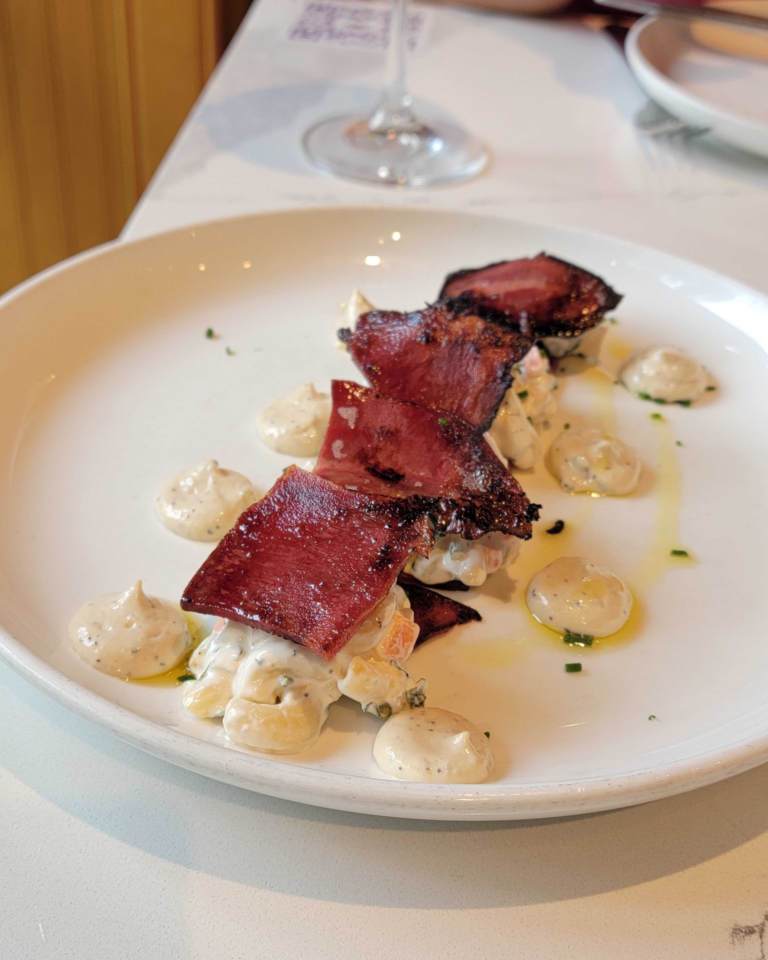 I took my wife to Crevette for our anniversary for a nice seafood-focused dinner. The cocktails here are nice. I did a classic martini, and instead of bread the table was adorned with a small place of mixed olives.