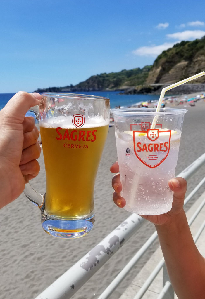 This was a beach day though, so we soaked up some rays and drank some refreshing Sagres beers on the shore at Bar Praia de Agua de Alto. Sagres tasted like a Corona or a Bud Light. The Radler is lemon flavored.