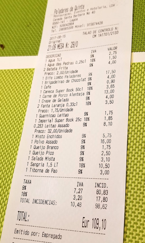 After more driving and sight seeing, we ate at a restaurant near our apartment called Paladares da Quinta.