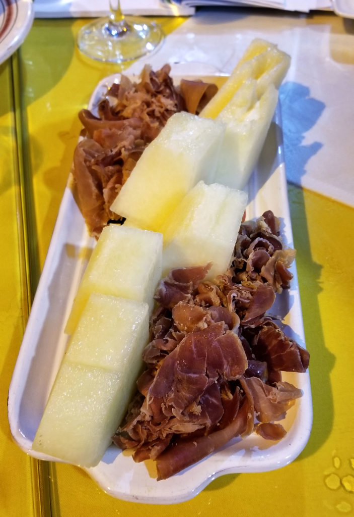 That night we ate in Ponta Delgada, at a restaurant called Rotas do Vinho. Melon and prosciutto:
