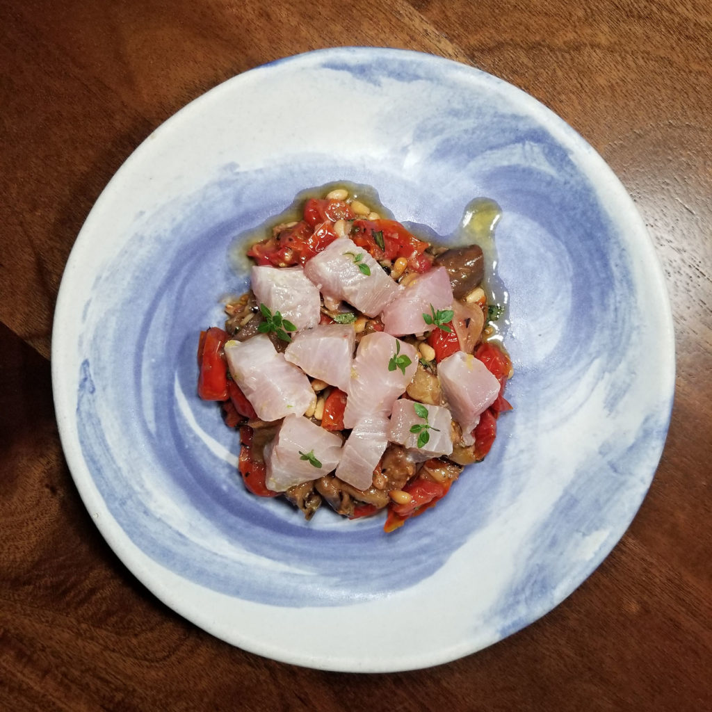 We started with the roasted peppers appetizer, which is drizzled with 25yr old balsamic, sprinkled with crumbled pistachio, and topped with a dollop of pistachio cream. This was delicious, but I think it could be served with some thin slices of toasted country bread to knock back the concentrated natural salinity of the peppers.