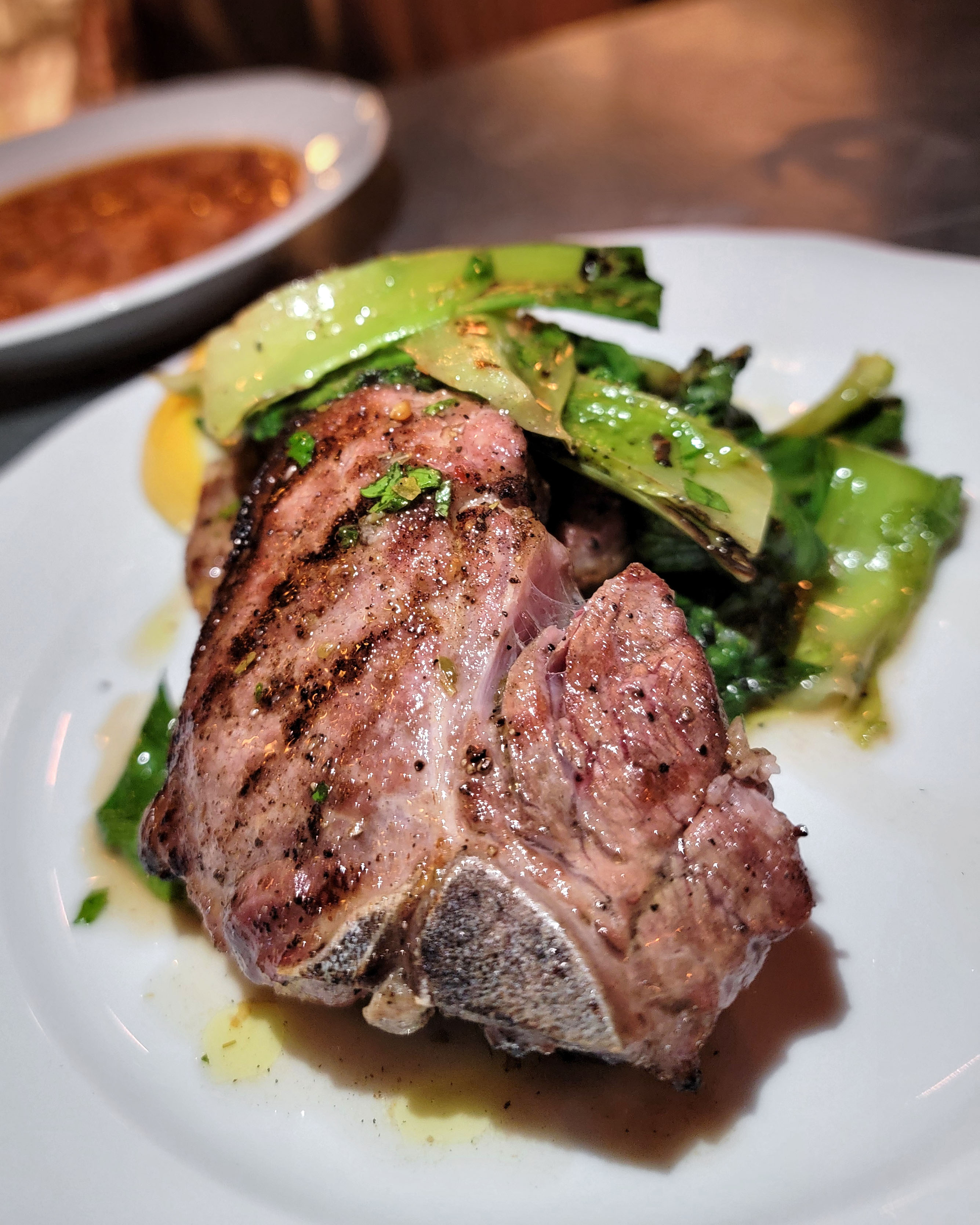 The lamb was perfectly cooked to medium rare, and came as a composed dish with grilled escarole. I loved this. No game flavor, just really simply grilled with salt and pepper.