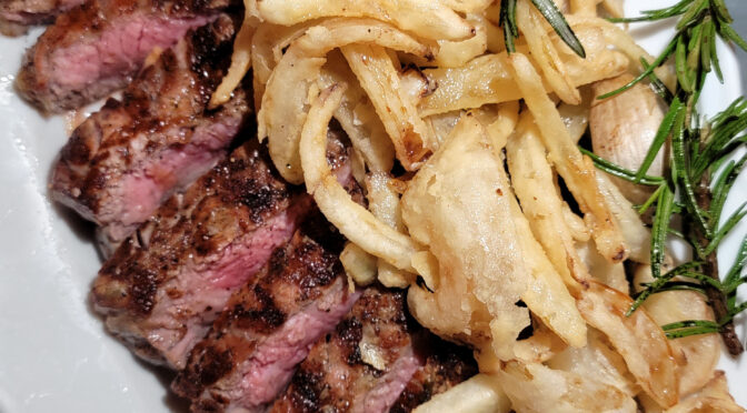 This 18oz boneless cut was dry aged and grilled to perfection. The aged flavor was mild, but it was all so tender and delicious. Very nicely seasoned, and the fried onions and garlic that come with it are heavenly. 9/10. The only down side to this steak is that it cost $86. Crazy!