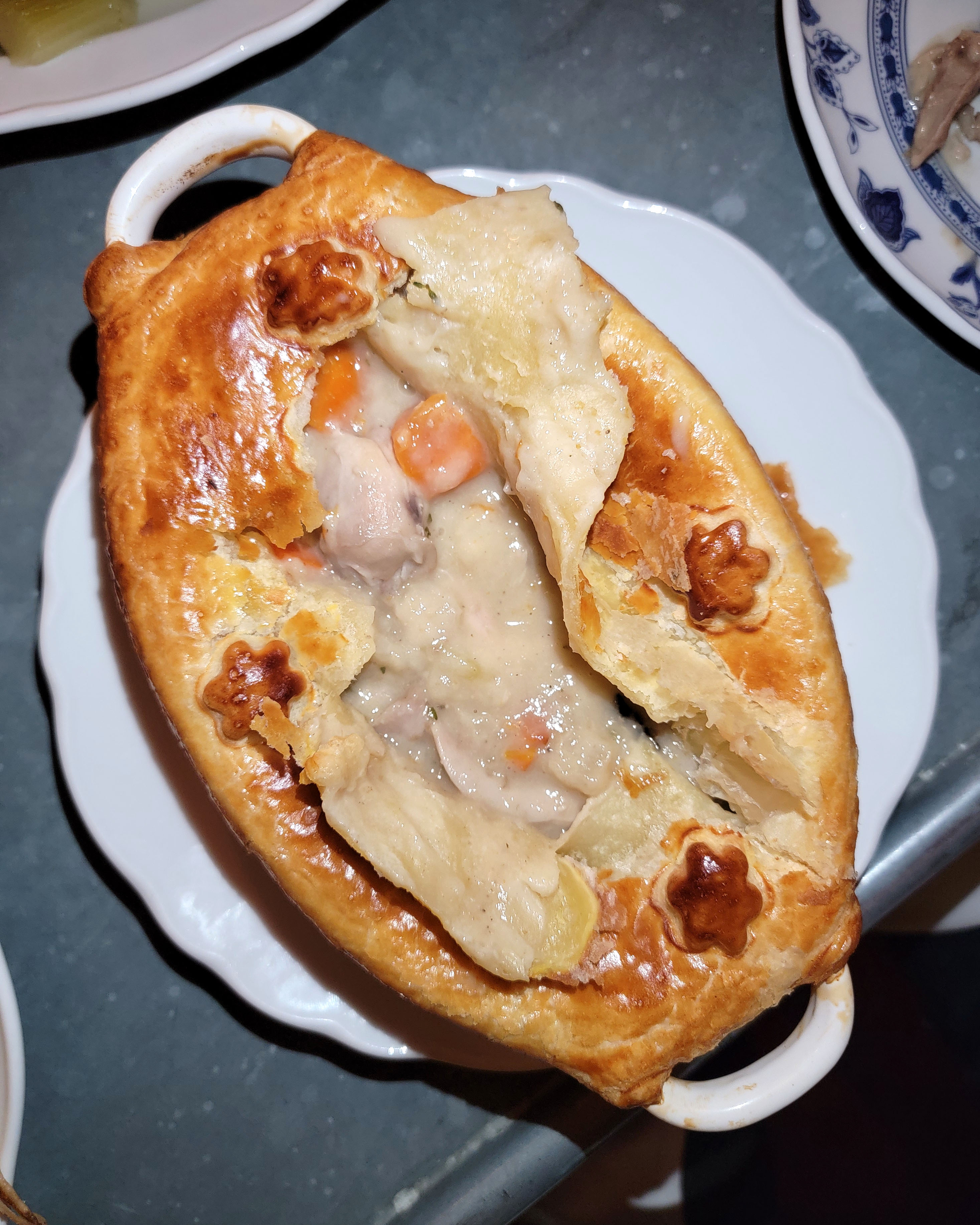 Next, we had the rabbit pot pie, which was on special. It was beautifully presented, but here’s a shot of the pie after we cracked it open.