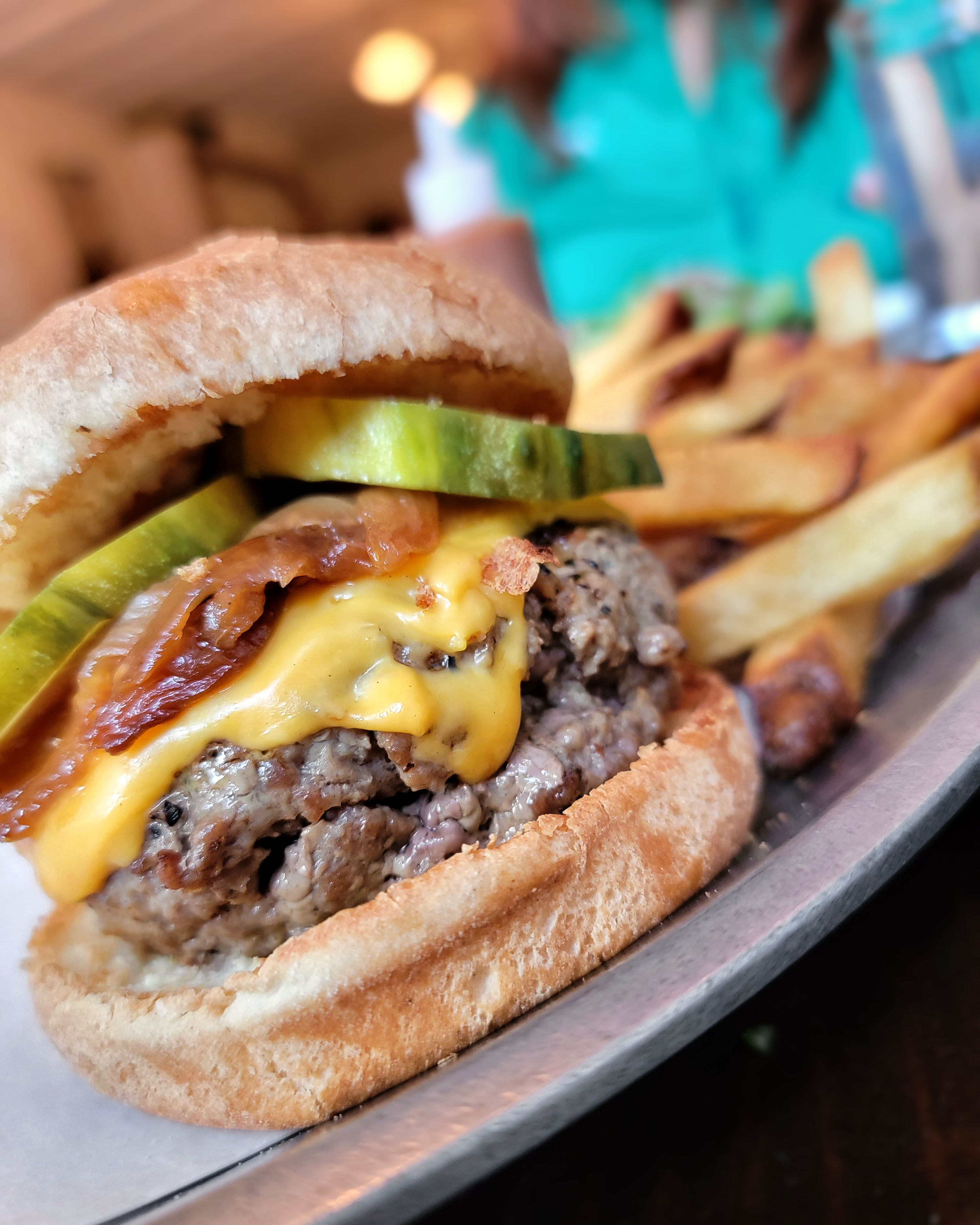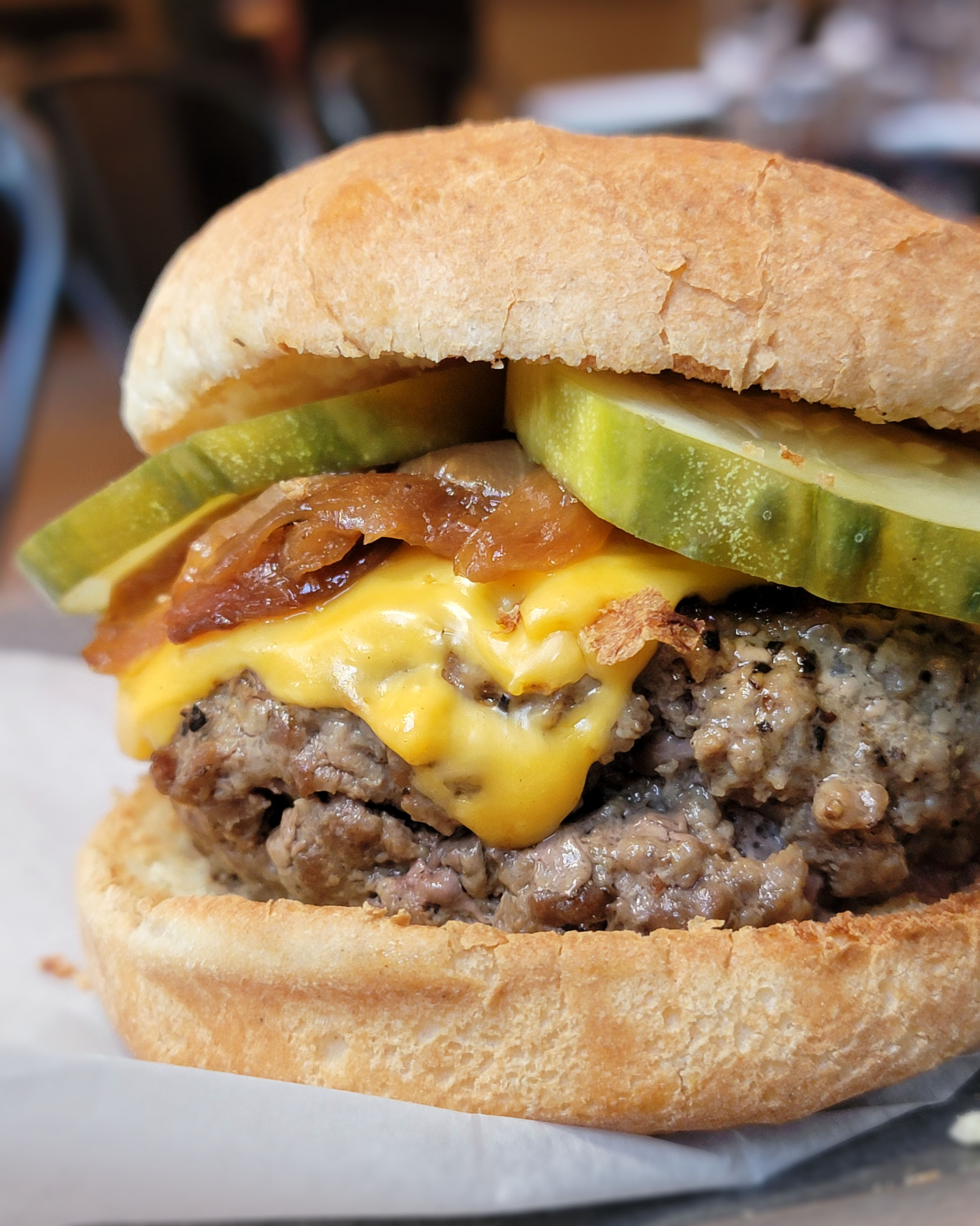 The burger, I am told, is crafted with rib eye fat cap. It’s a simple arrangement of American cheese, caramelized onions and pickles. My kind of burger. This is a damn good representation of how I like my burgers, however I just wish the bun was a bit softer and more supple. Potato buns rule.