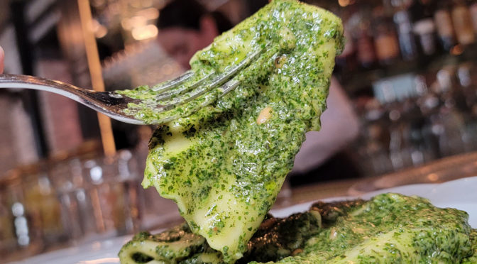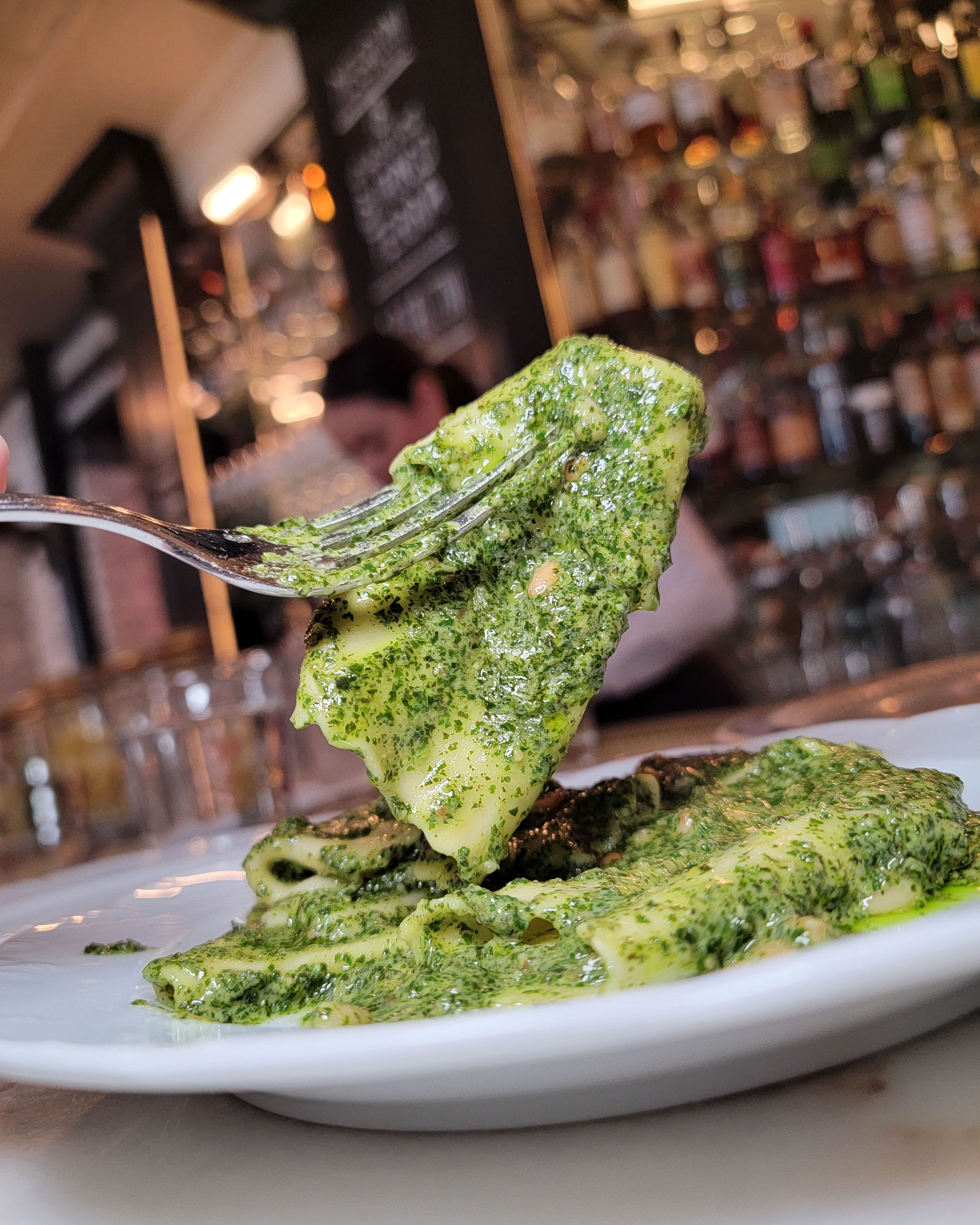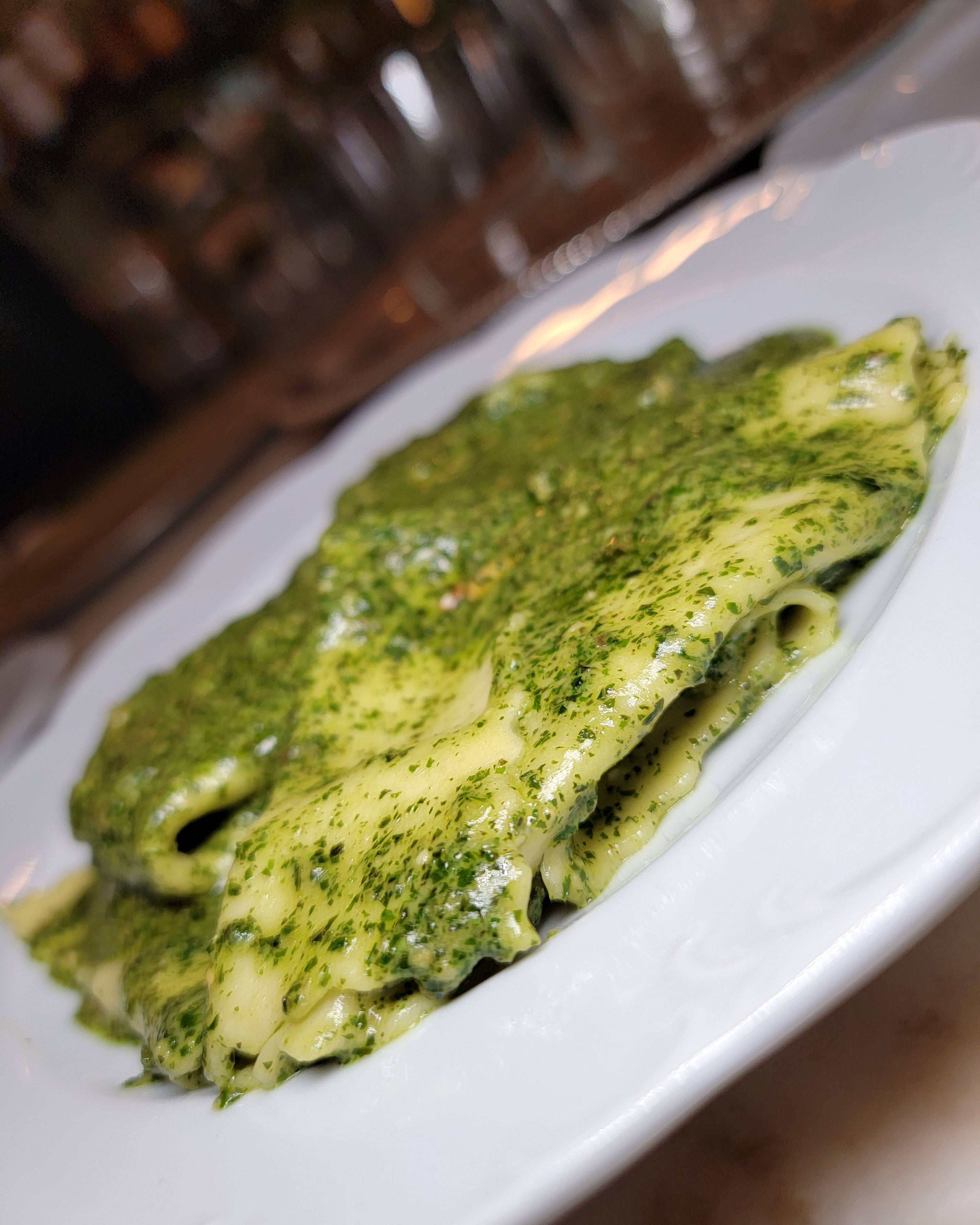 This stracci pesto pasta was like a pile of lasagna noodles.
