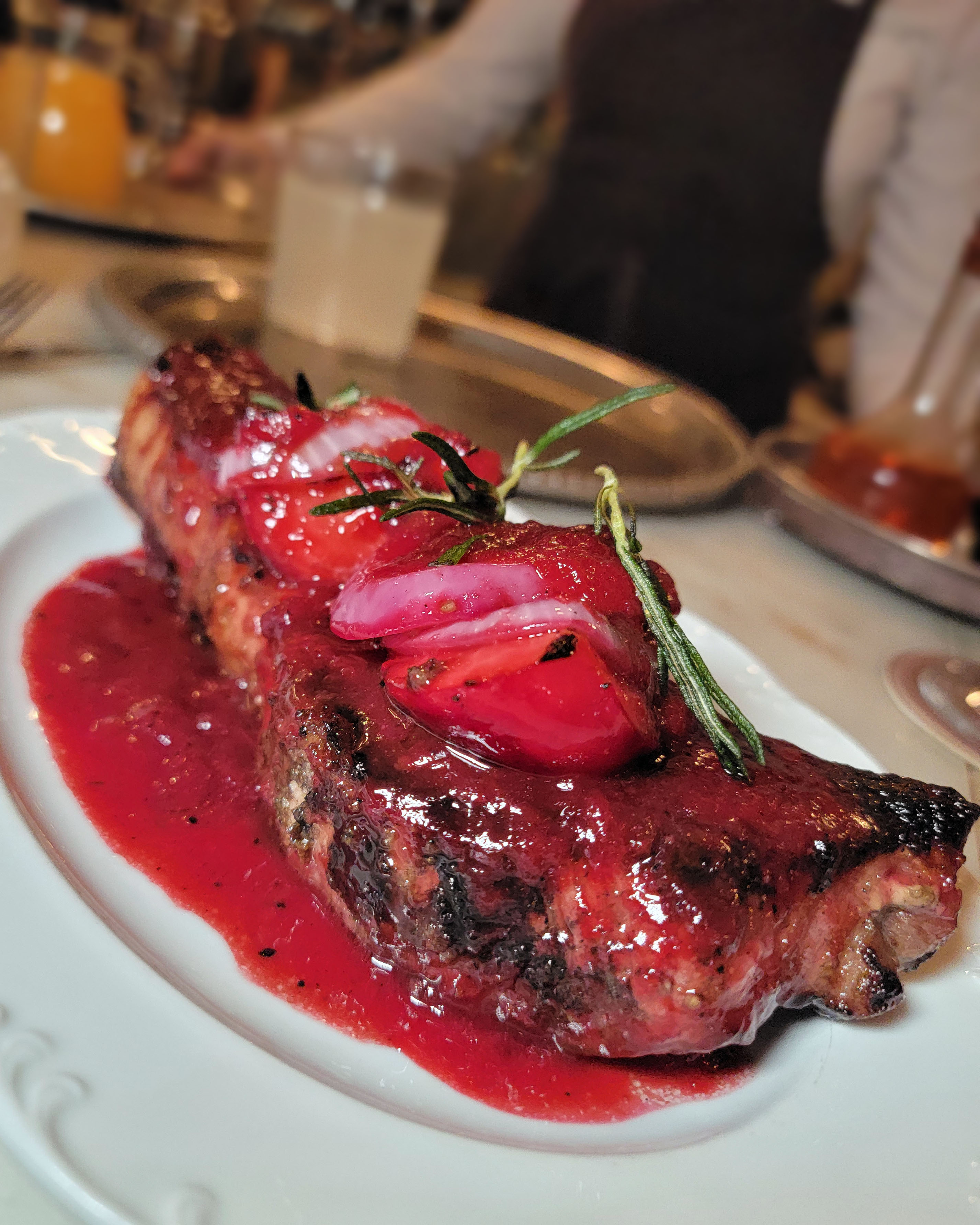 This pork dish was belly, roasted and then grilled, with a tangy plum BBQ sauce, of sorts. Very unique.