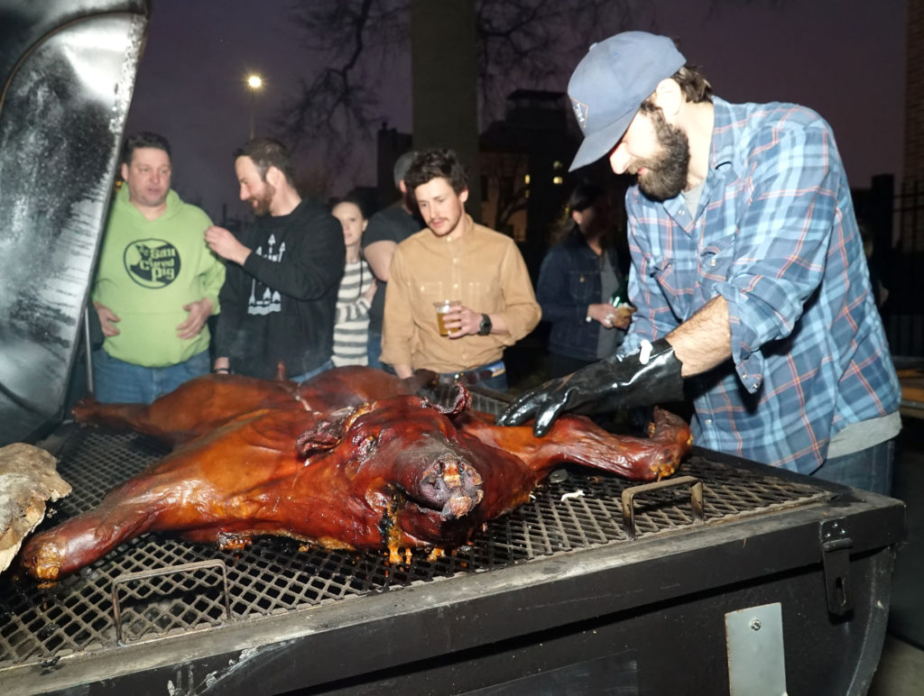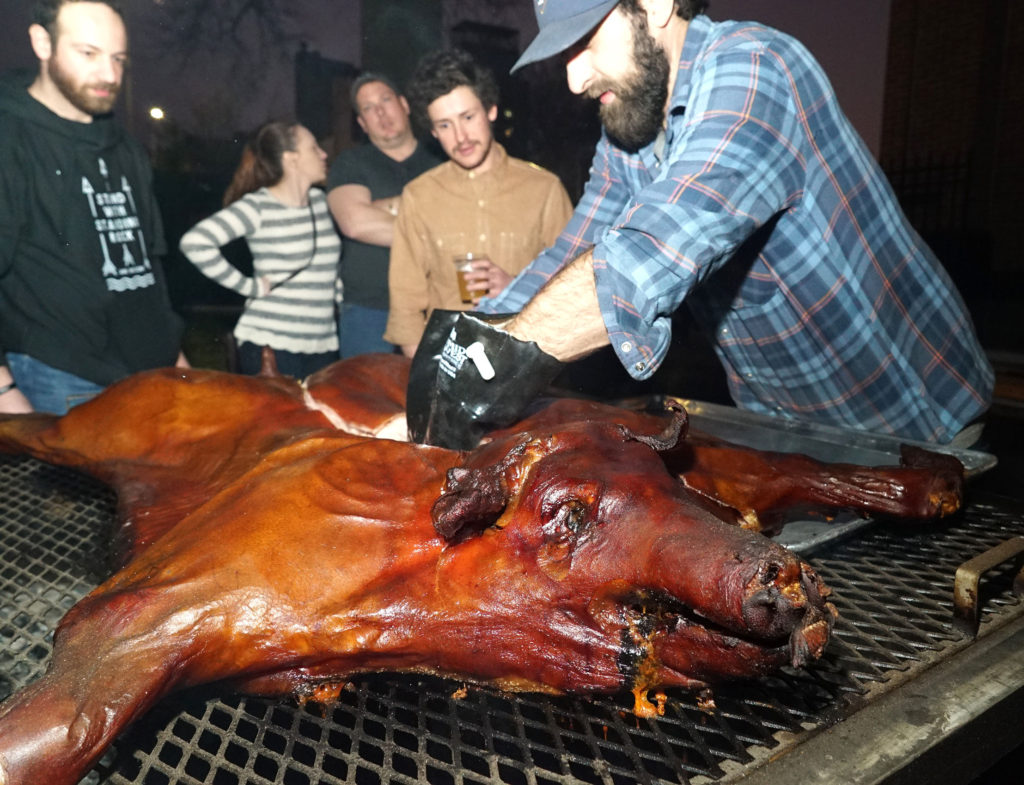 Smoke Show was apparently smoking a whole hog on the premesis. I knew something was up when I saw the sign and cleaver.