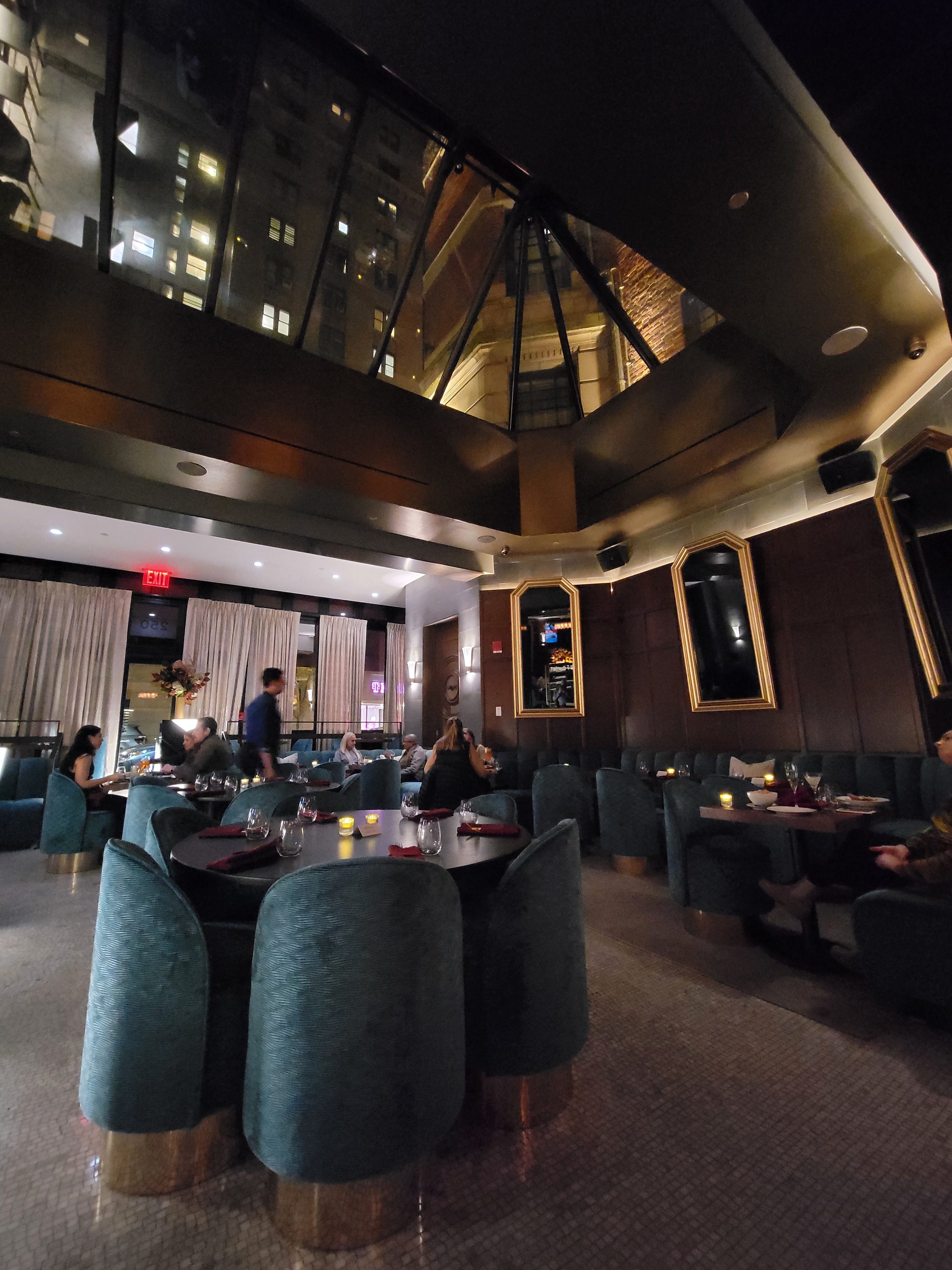 Allure is the new restaurant inside the Belleclaire Hotel on the upper west side, right on the corner of 77th and Broadway. The dining room has a beautiful skylight atrium overhead, almost like an old timey greenhouse.