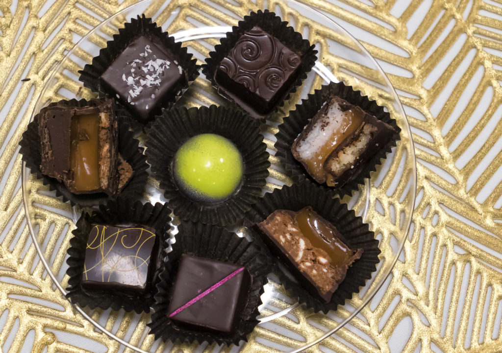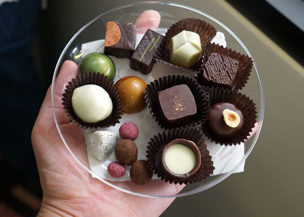 For dessert, we tried these beauties that were shaped like cherries, which had either a vanilla or white chocolate mousse inside of a chocolate shell that was covered in a cherry glaze and plopped on top of a hazelnut and chocolate crumble. Perfect way to end the meal.