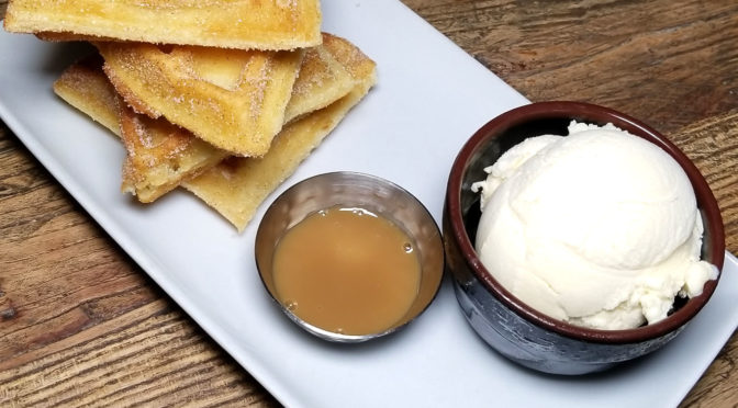 We ordered two apps, but Derrick sent out three more! We had the pleasure of trying the French dips on toast. the shishito peppers, the sea bass tacos, the grilled cheese and tomato soup dumplings, and the steak tartare quesadillas. I think my favorites were the French dips and the sea bass tacos, but The Cake Dealer preferred the dumplings. All of them were great though.