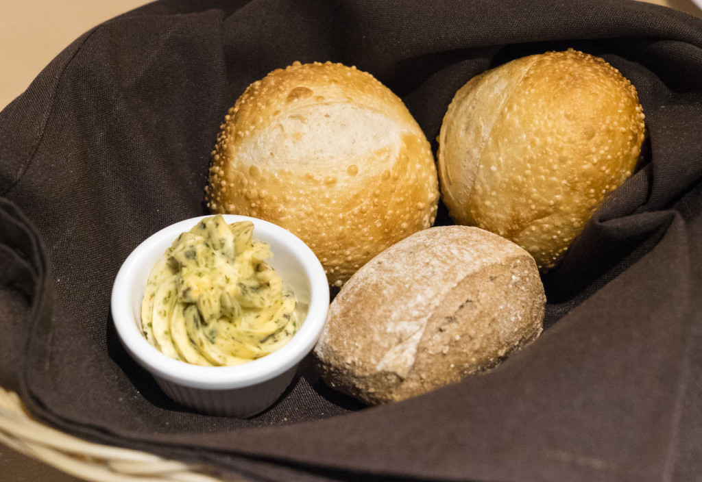 The table bread was toasty warm – super fresh – and came with a delicious garlic herb butter.