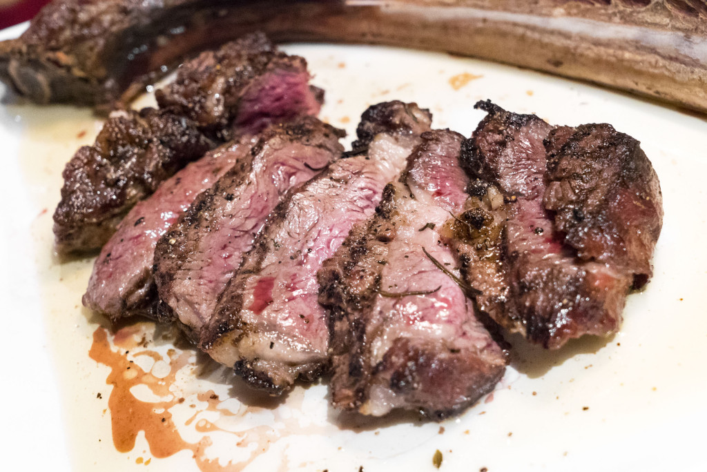 There’s a good deal of options here. All the basics are covered for the major chops (plus a skirt), and there are various size and bone options for each. Very nice. Our cut didn’t have too much of the Spinalis cap, but from what I understand they offer table-side meat selection, so you can typically pick exactly the right cut for you. The website indicates that Atlas ages their steak on site, but I’m not certain whether the quality is prime or choice. The quality of fat on our cut was a bit more gristled than what I usually like, but not unacceptable by any means. There was very little waste on our place. We gobbled down everything. Some portions of the steak were a little bit grainy in texture, but I think that was because of the overcooking mishap.