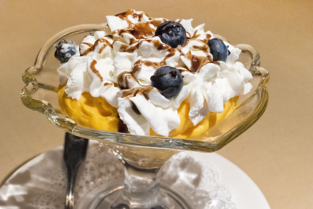 Next up was yet another unique item, but this one was much more successful. The menu labels it a mango tiramisu, though it is more like a mango mousse re-invention of, or spin on, tiramisu.