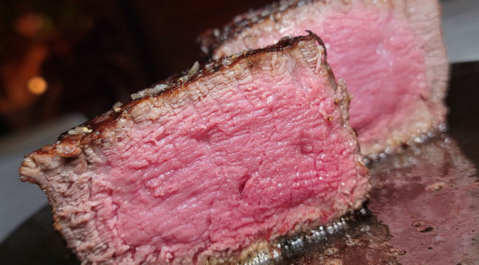 Nice aged rib eye on the bone. 8/10. Definitely some steak improvement over the one downtown.
