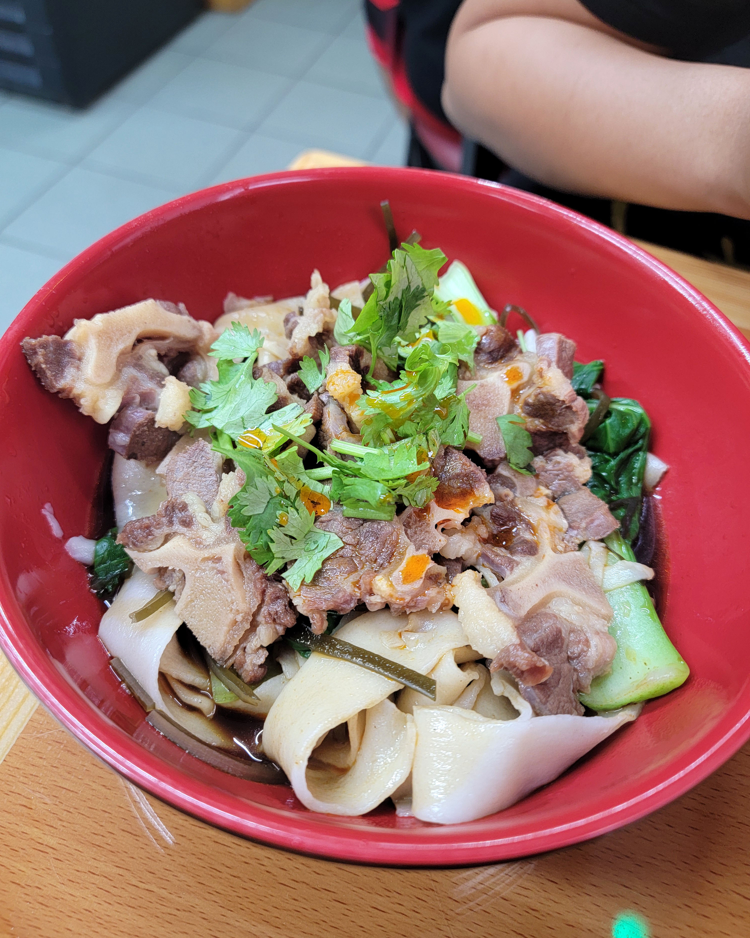 Despite being a little bit soupy, the dry hand-pulled noodles were awesome. We tried the spicy chicken and spicy oxtail. I give the edge to the chicken, mainly because the oxtail wasnt stewed or slow cooked long enough. The bones were cut very thin so that they cook faster, but that unfortunately means the meat will be a bit less tender. Still great though.