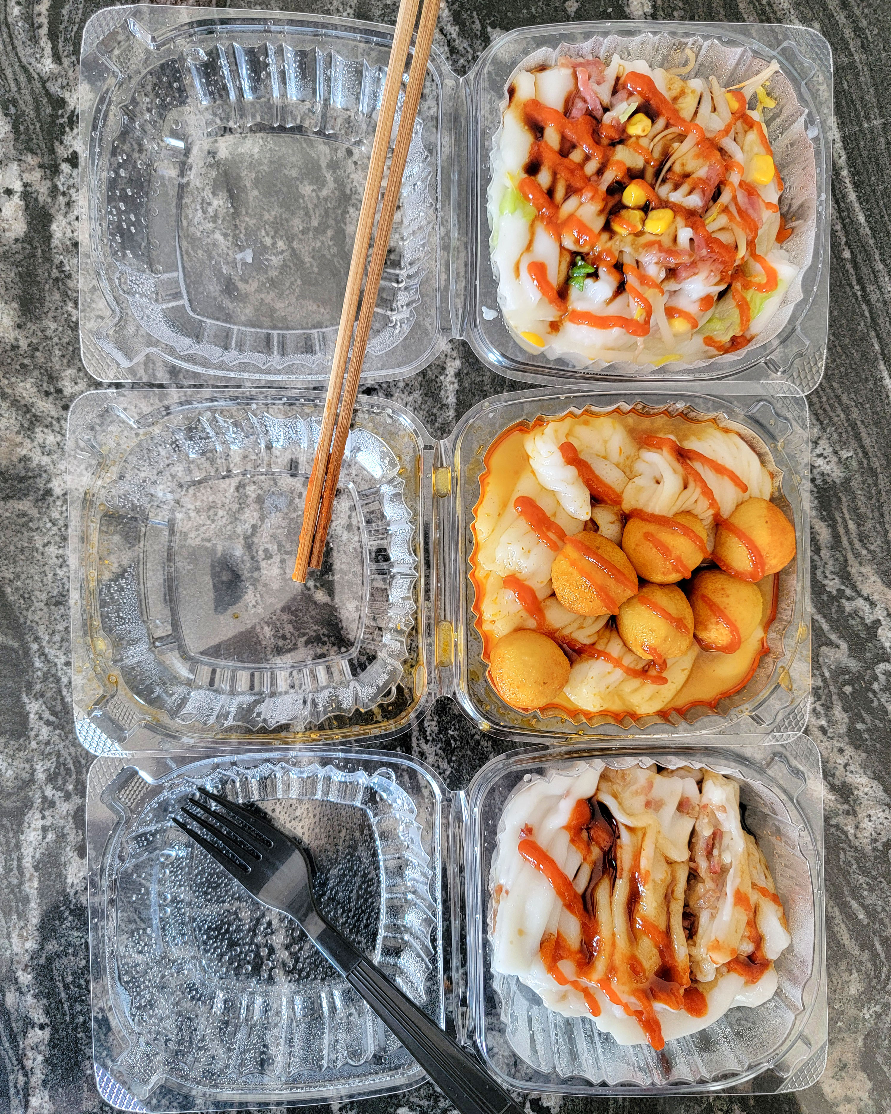 After a skate park session, I rode over to pick some up. I took them home and devoured them all. Chinese sausage with mixed veggies, curry fish ball, and pork. All great. Hard to choose a favorite.