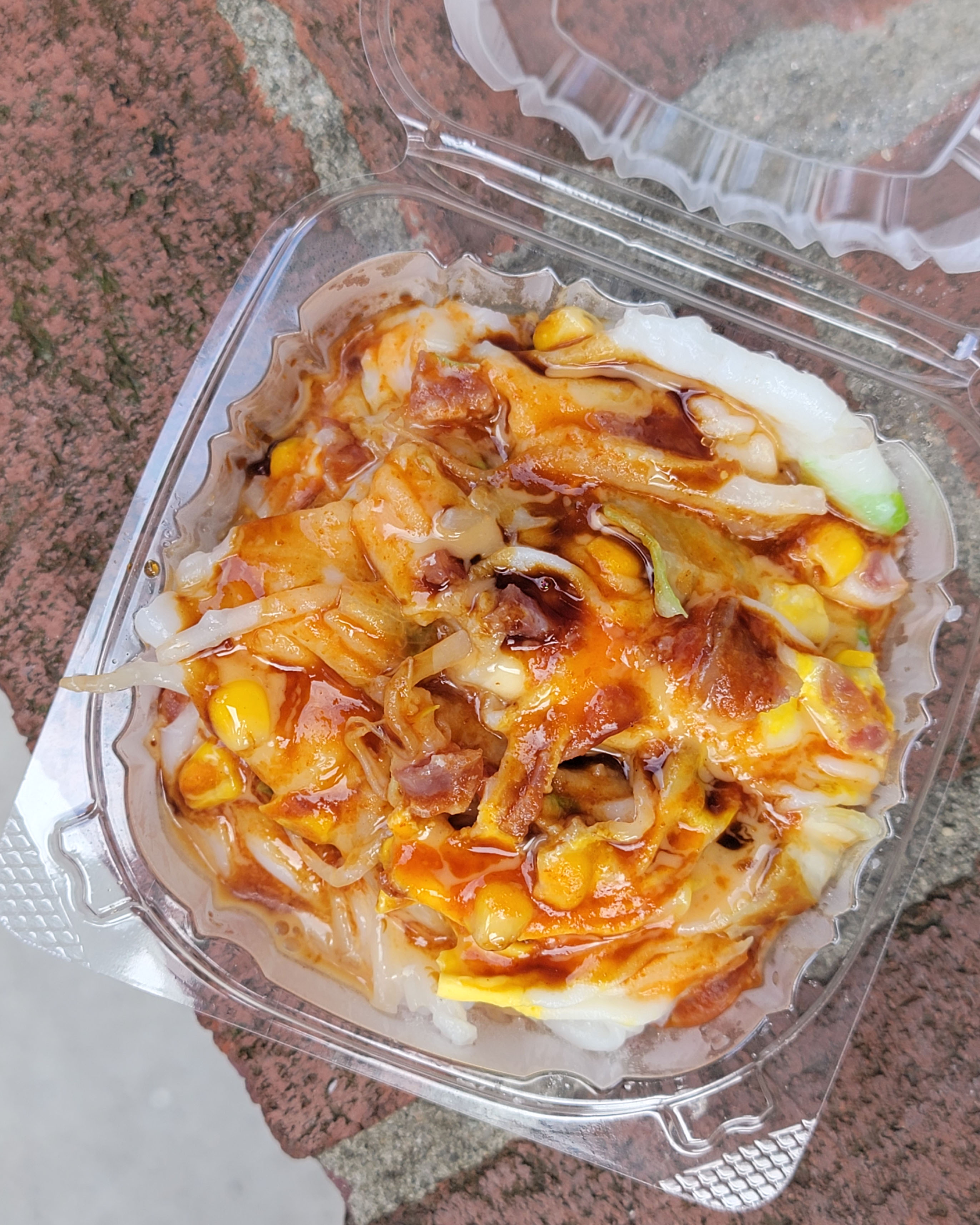 This time I added an egg to the Chinese sausage and mixed veggies roll. It was divine! Noodles here are always a bit mushy, but you really can’t beat it for the price. Adding all of the sauces is the right move (peanut, soy, hoisin and hot sauce).